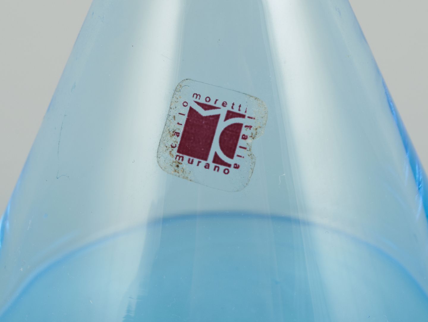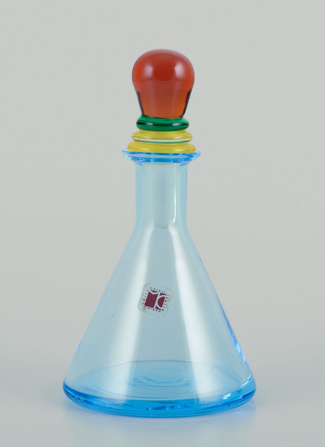 Carlo Moretti for Murano, Italien. Flakon i kunstglas. Mundblæst glas i mange farver. Ca. 1980. Signeret samt mærkat. Perfekt stand. Mål: H 13,0 cm. med prop x D 7,2 cm.