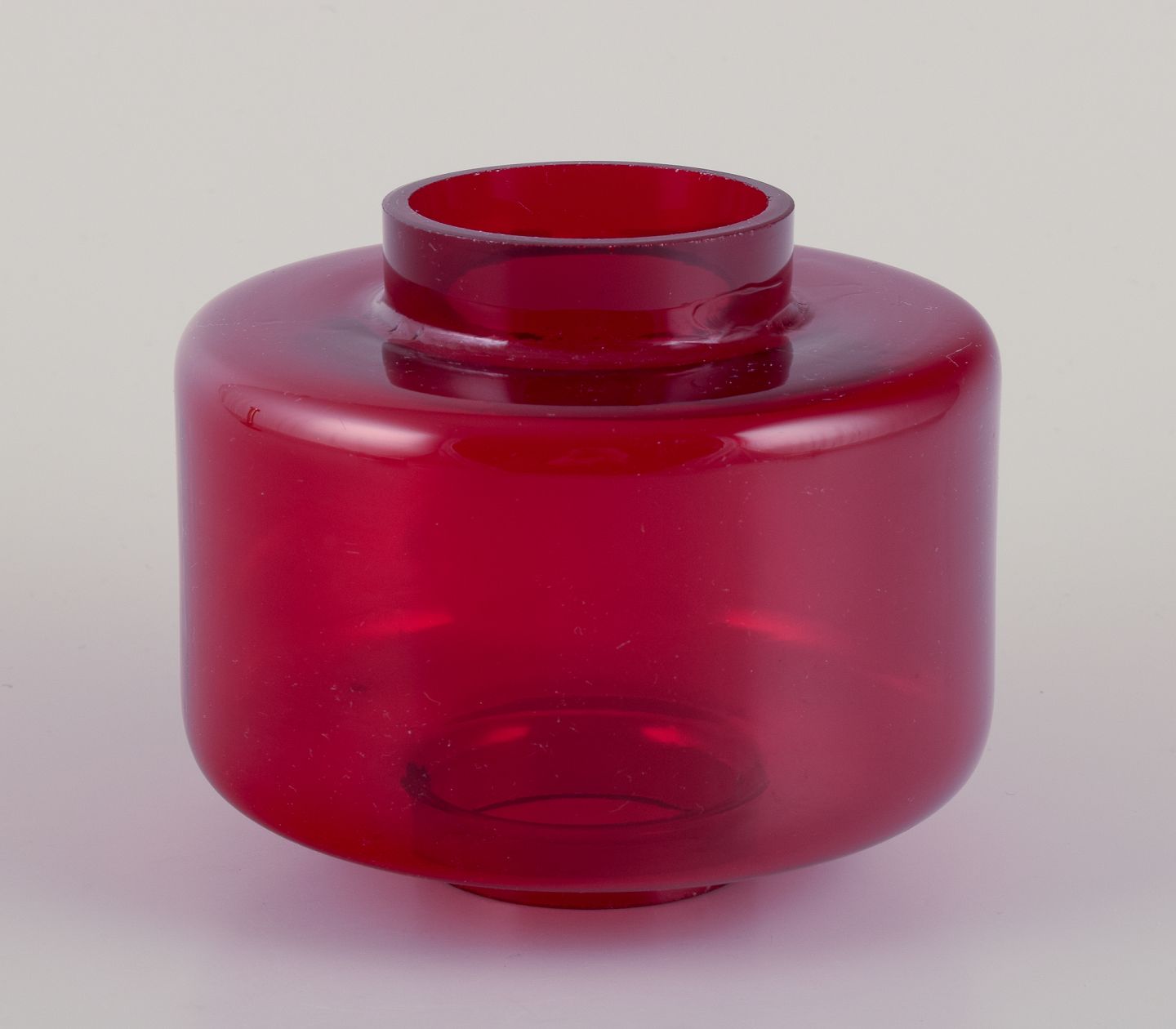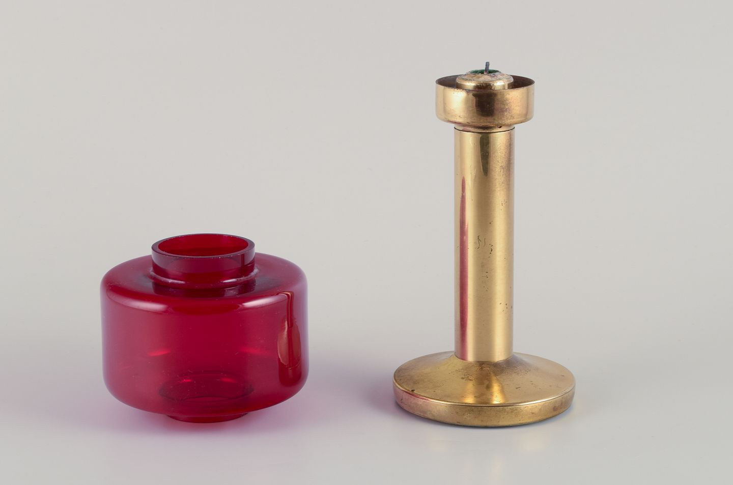 Hans-Agne Jakobsson (1919-2009), Atelje Lyktan, Åhus. Table lamp in red glass and brass for candles. From the 1970s. In perfect condition. Dimensions: Height 25.5 cm x Diameter 11.0 cm.