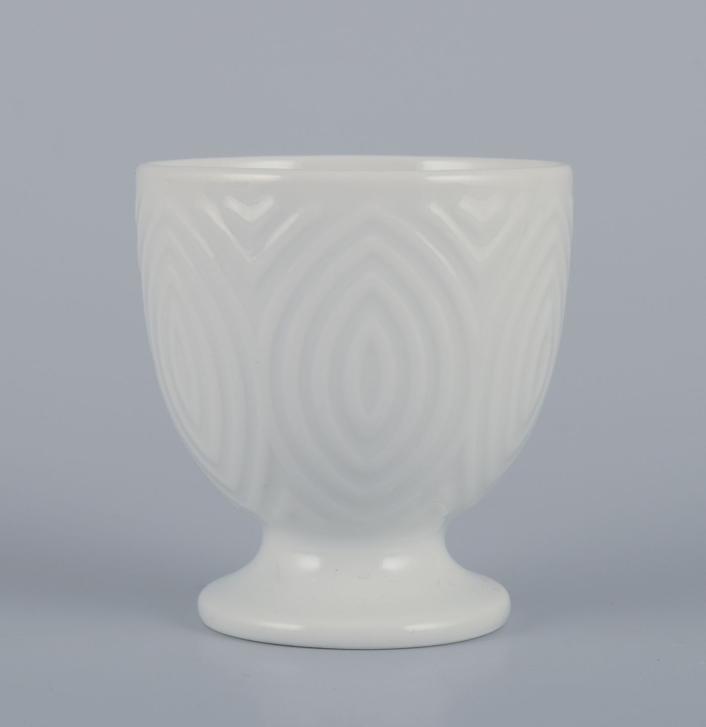 Axel Salto for Royal Copenhagen. Fire æggebægre i hvidt porcelæn. Datering: Ca. 1960’erne. Tegnet af Axel Salto i 1956. I perfekt stand. Første sortering. Mål: H 5,5 cm. x D 5,0 cm.