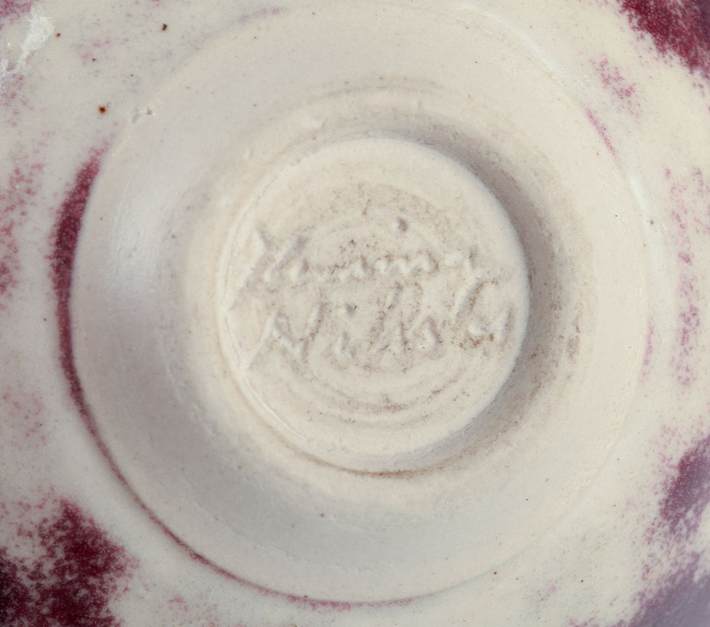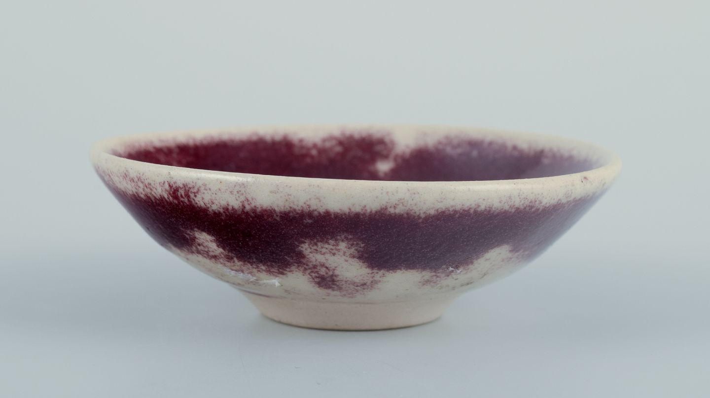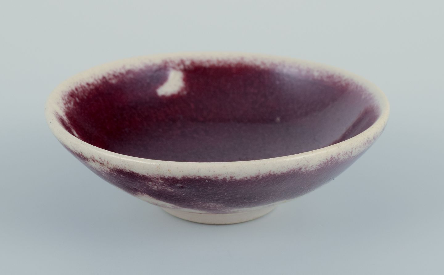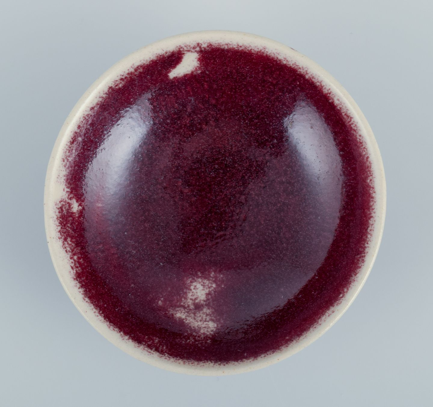 Skål af Sven Hofverberg i blå glasur. Skål af Henning Nilsson i bordeaux glasur.