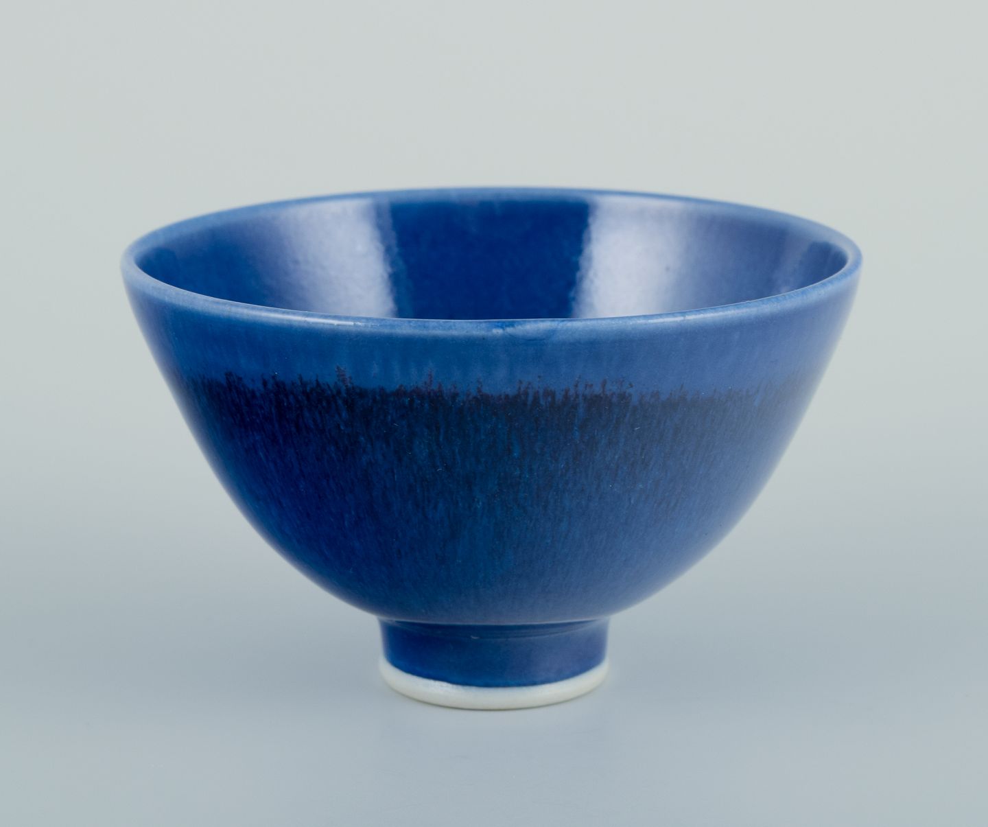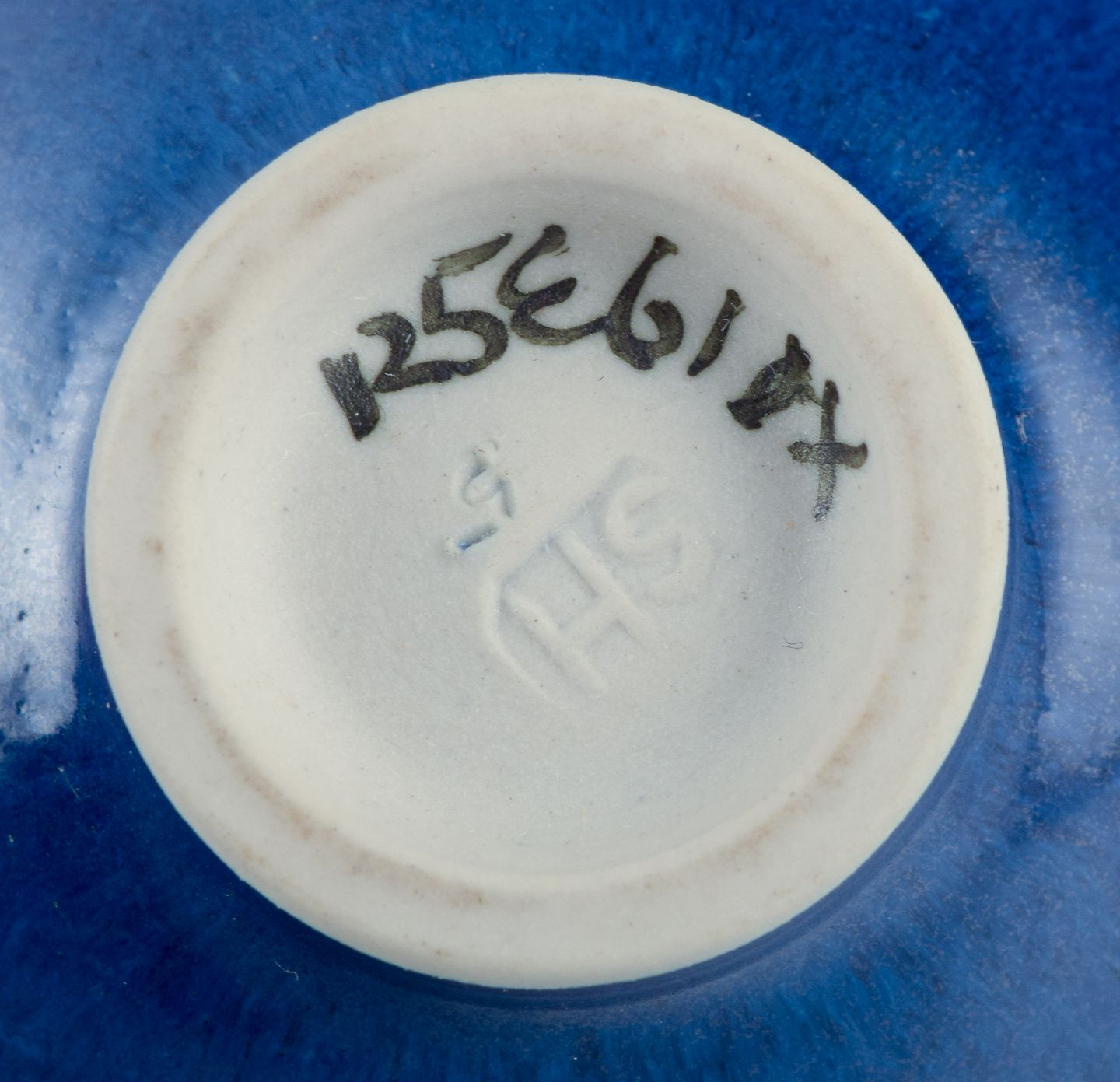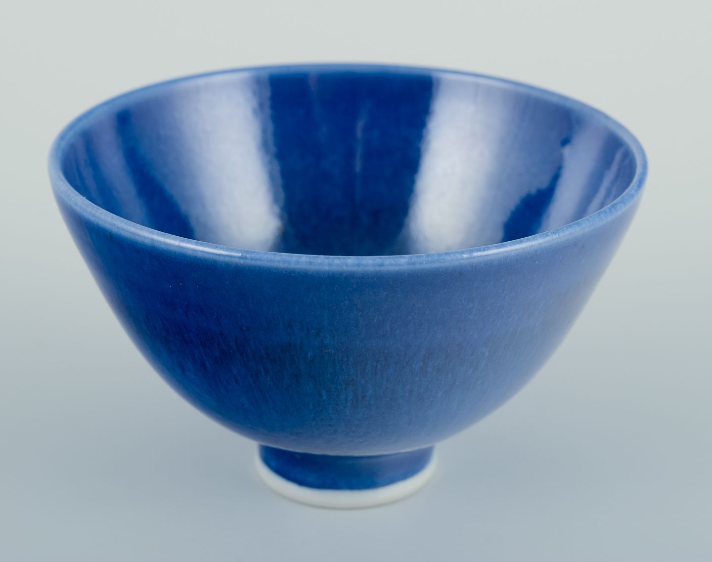 Skål af Sven Hofverberg i blå glasur. Skål af Henning Nilsson i bordeaux glasur.