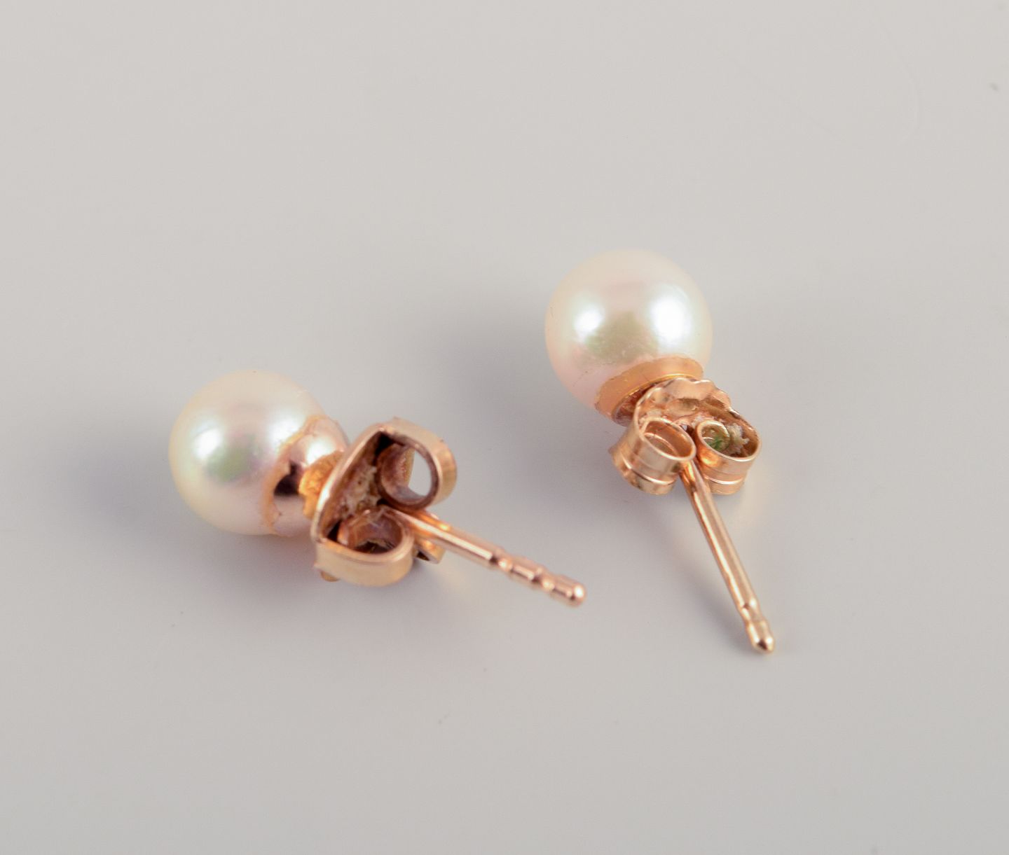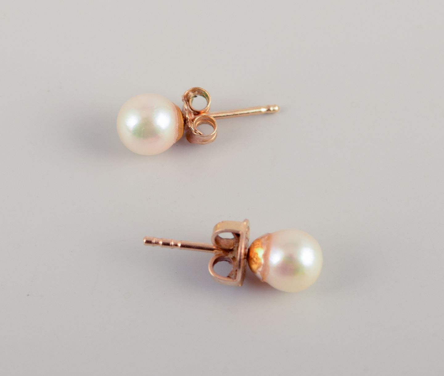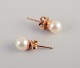 Swedish goldsmith. A pair of classic ear studs in 18 karat gold adorned with cultured pearls.