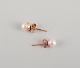 Swedish goldsmith. A pair of classic ear studs in 18 karat gold adorned with cultured pearls. Mid-20th century. In excellent condition. Marked. Dimensions: Length 15 mm.