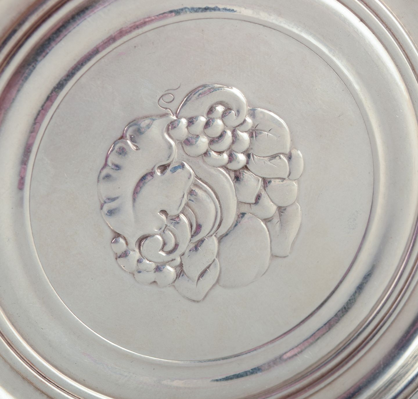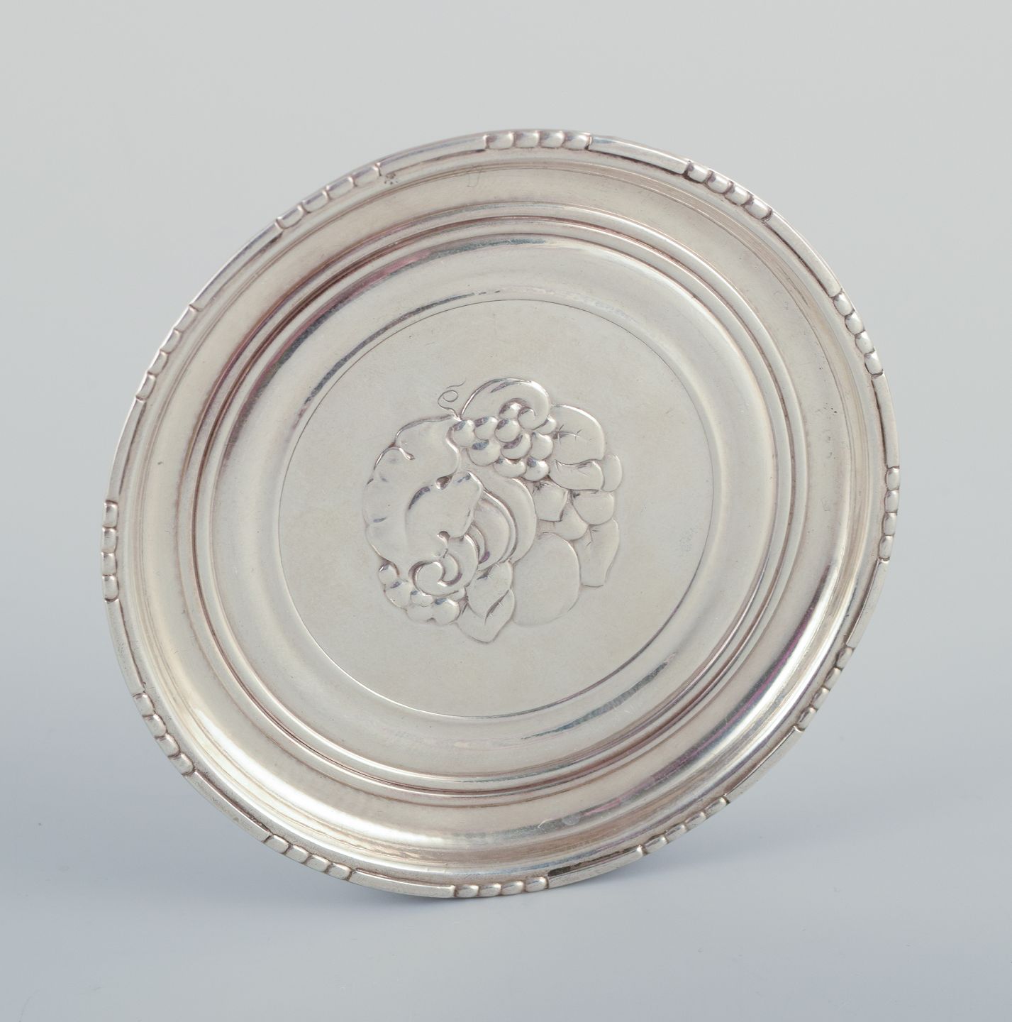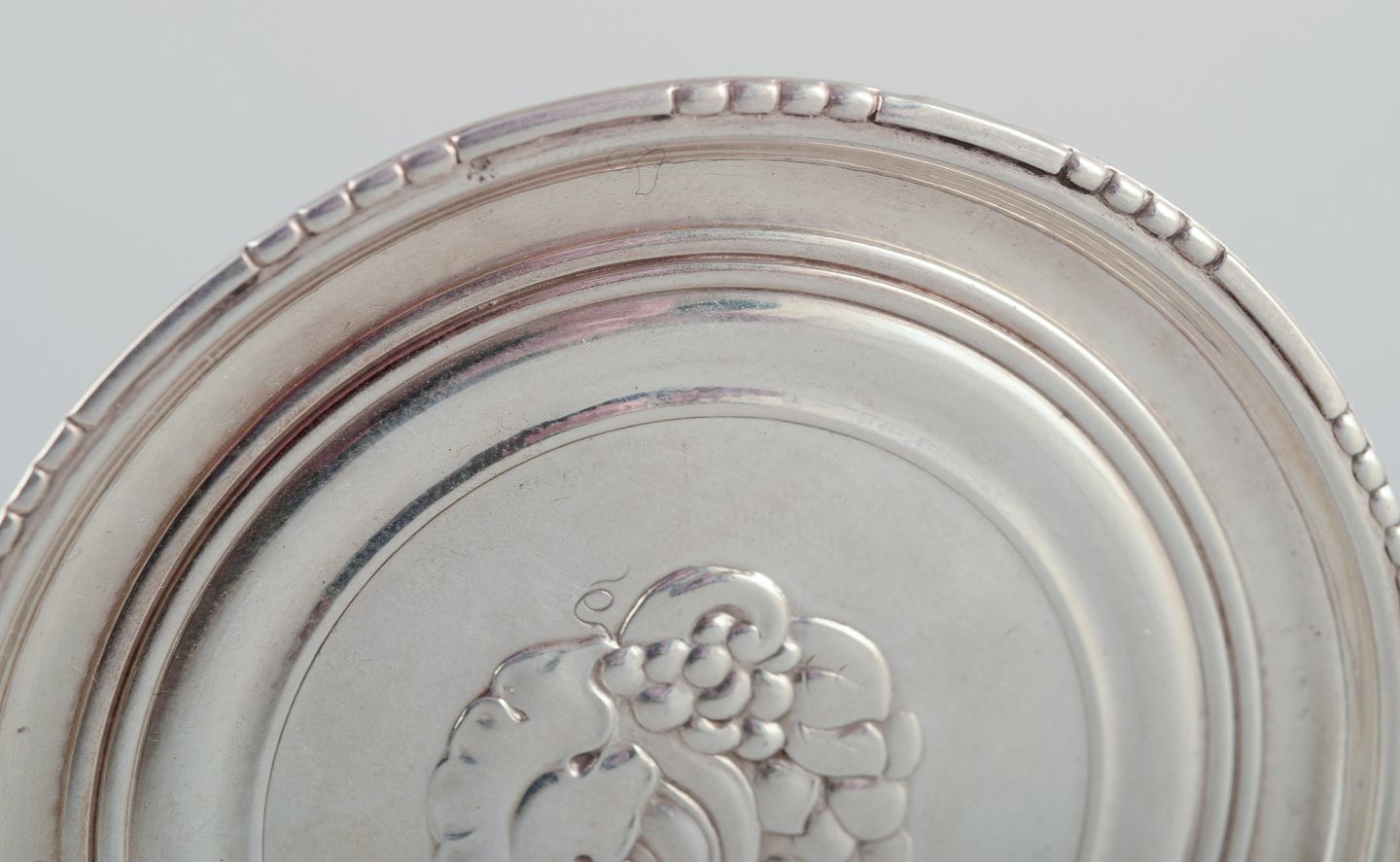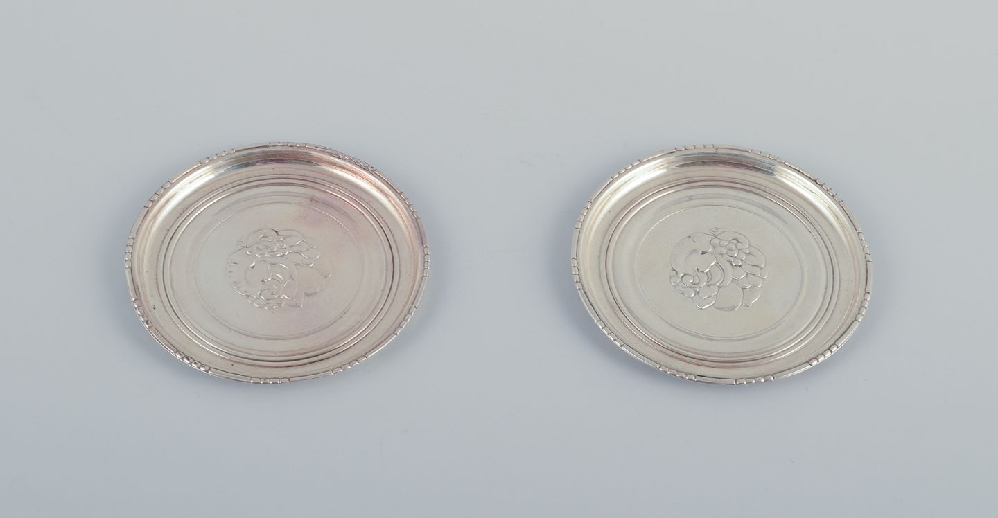 Georg Jensen, to flaskebakker af sterlingsølv. Modelnummer 41. Stemplet med 1915-1932 stempel. Klassisk design. Passer til flaske med en diameter på 7,0 cm. Mål: D 8,2 cm.