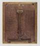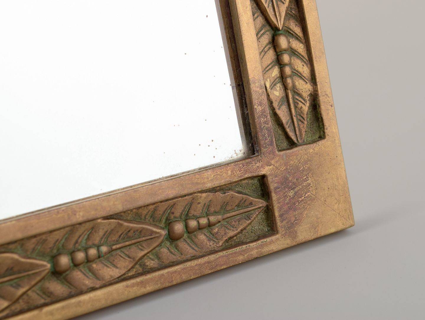 Tysk designer. Skønvirke bordspejl i messing. Designet med blade i relief. 1920/30’erne. Stemplet. I flot stand, med smuk patina. Holder på bagside. Mål: H 35,0 cm. x B 29,0 cm.