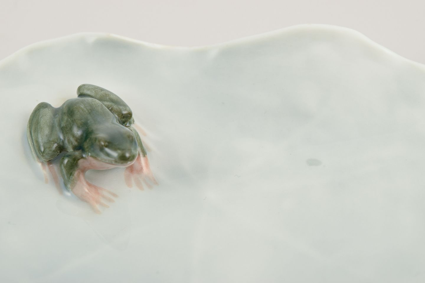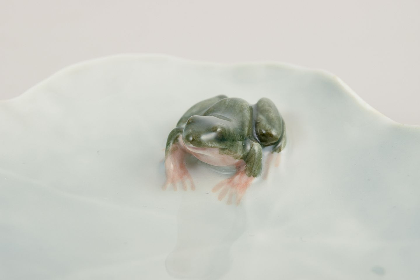 Royal Copenhagen, lille Art Nouveau fad med frø.
