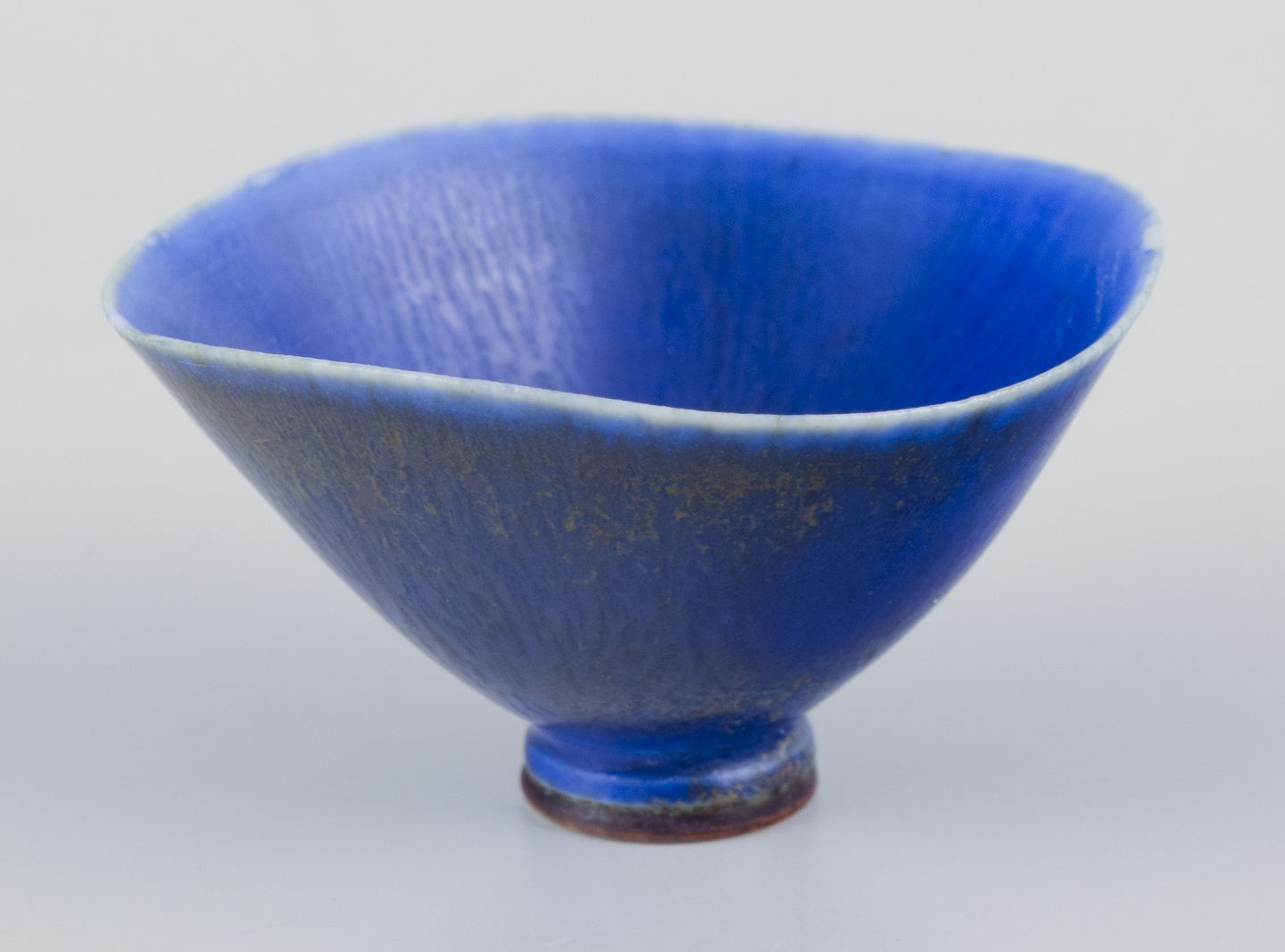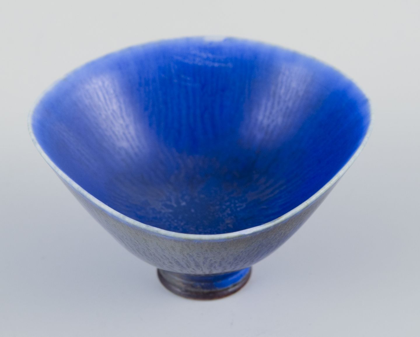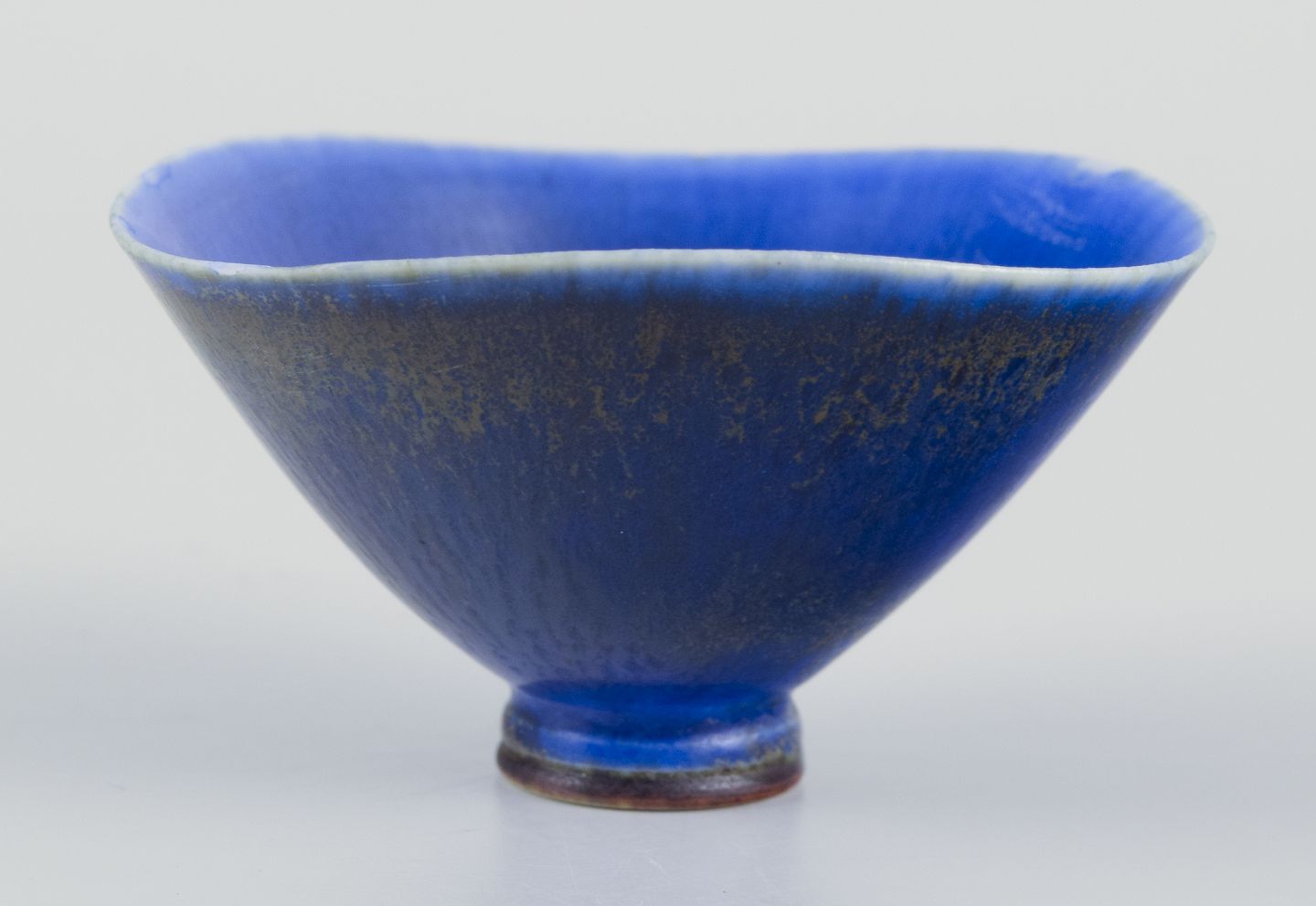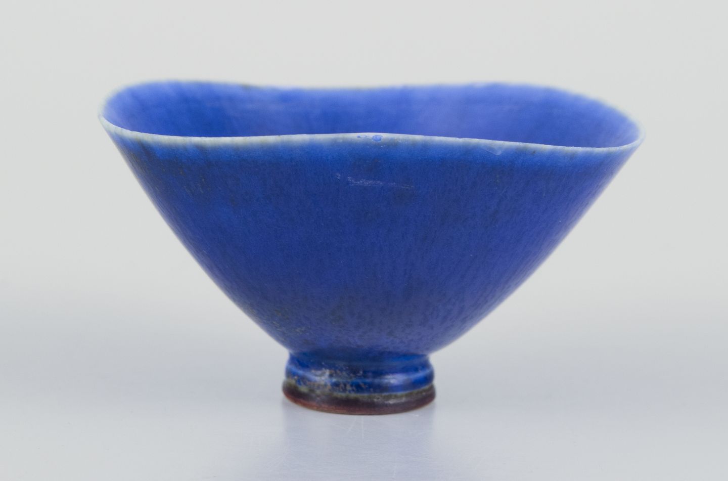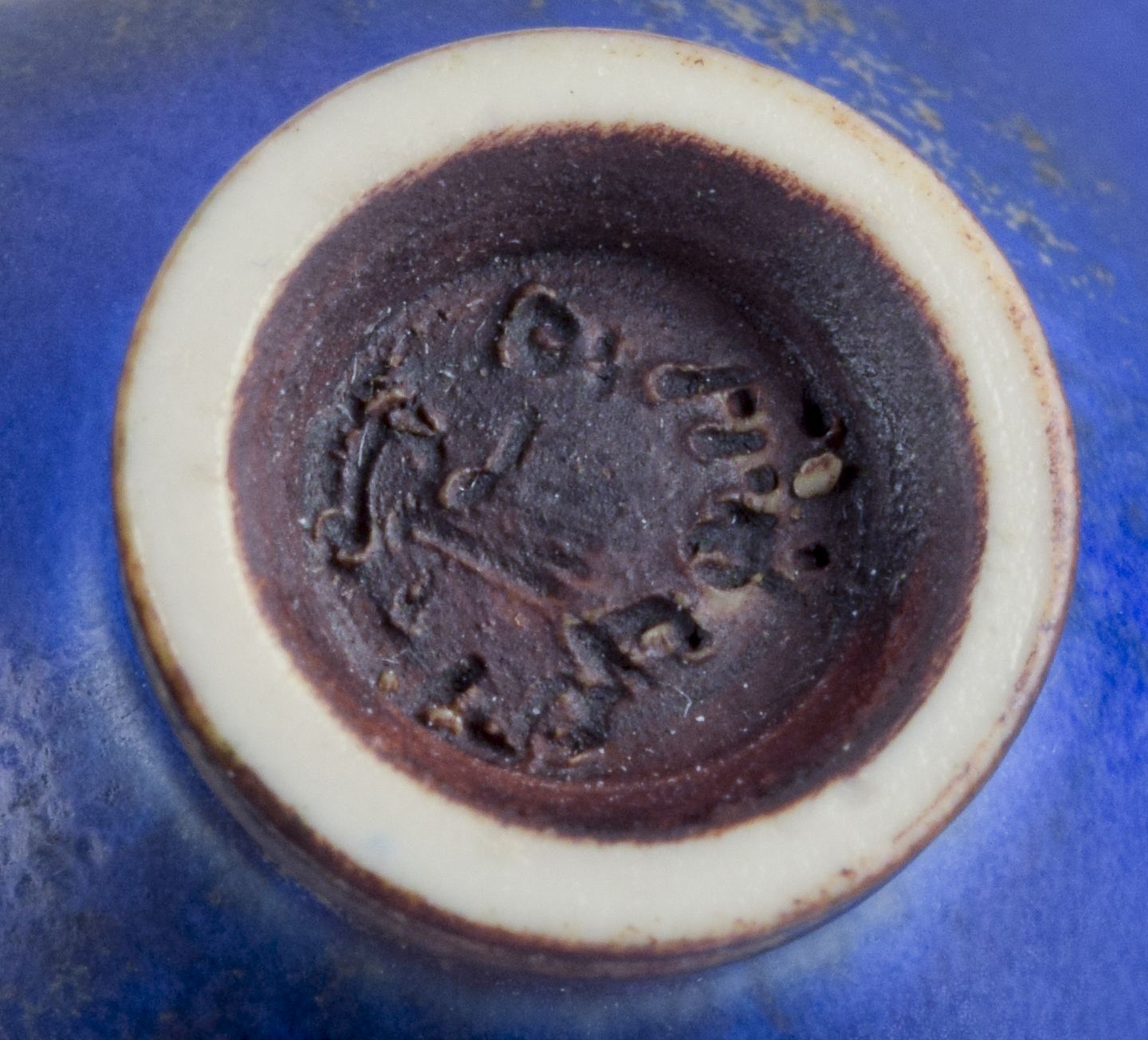 Berndt Friberg (1899-1981) for Gustavsberg Studiohand, Sverige. Unika miniature keramikvase med blå harepels glasur. Midt 1900-tallet. Signeret. Perfekt stand. Mål: D 4,5 cm. x H 3,0 cm.