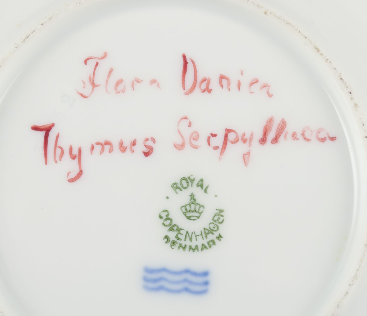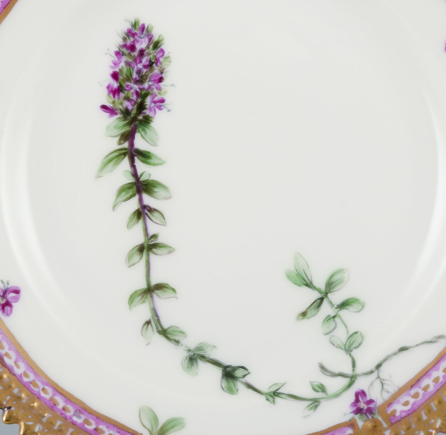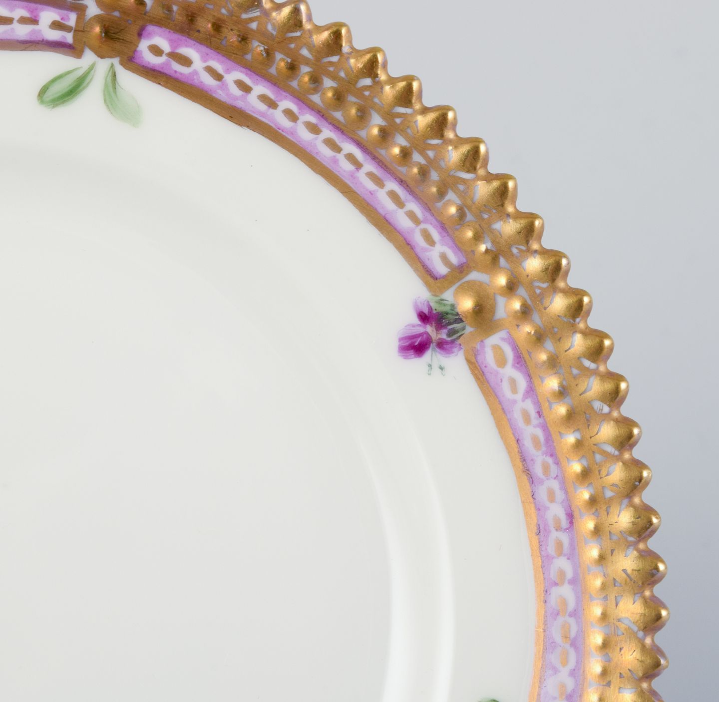 Royal Copenhagen Flora Danica. Sidetallerken i håndmalet porcelæn med blomster og gulddekoration.