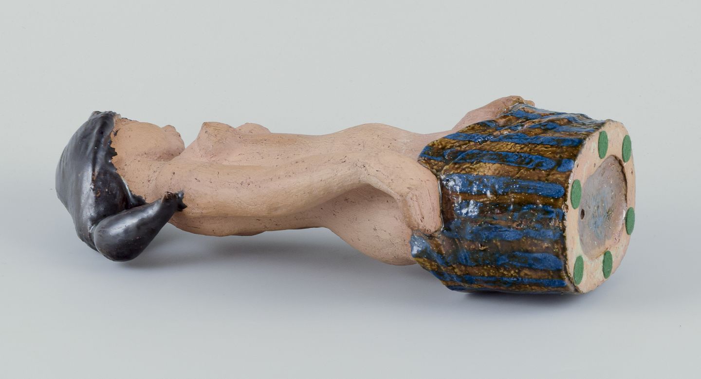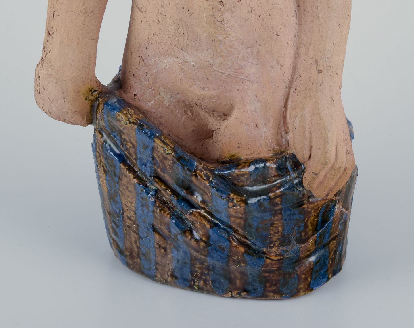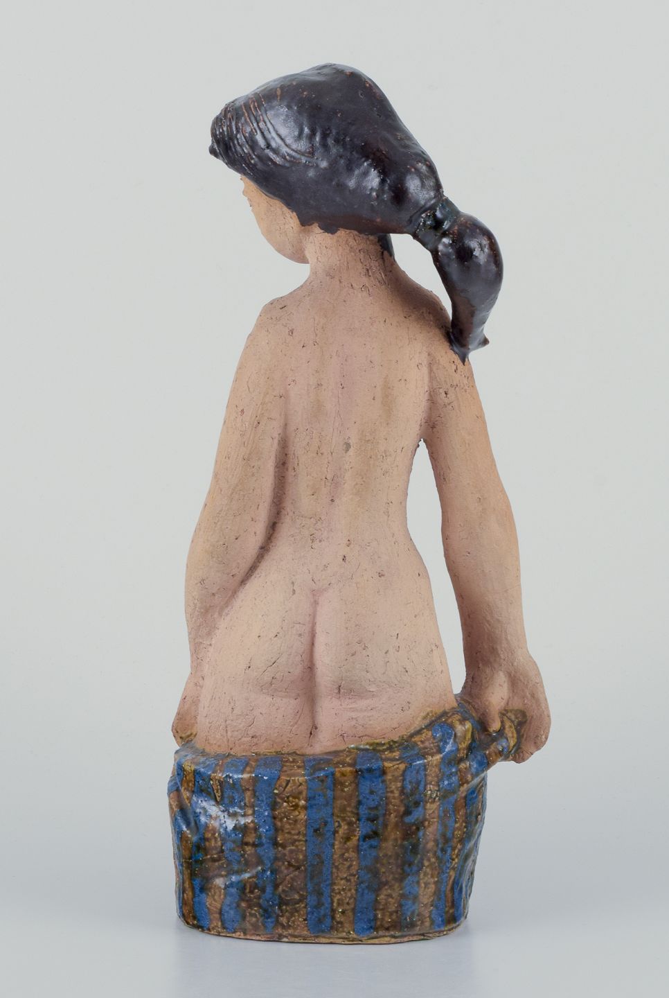 Unique figure of partially glazed earthenware modelled in the shape of a naked woman with a cloth.