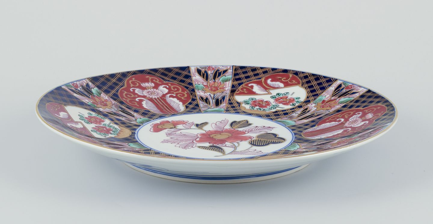 Japansk Kutami fad i porcelæn. Hånddekoreret med blomstermotiver. Gulddekoration. Ophæng i tin. 1900-talllet. Stemplet. Model: 2901. Mål: D 31,0 cm. x H 4,5 cm.