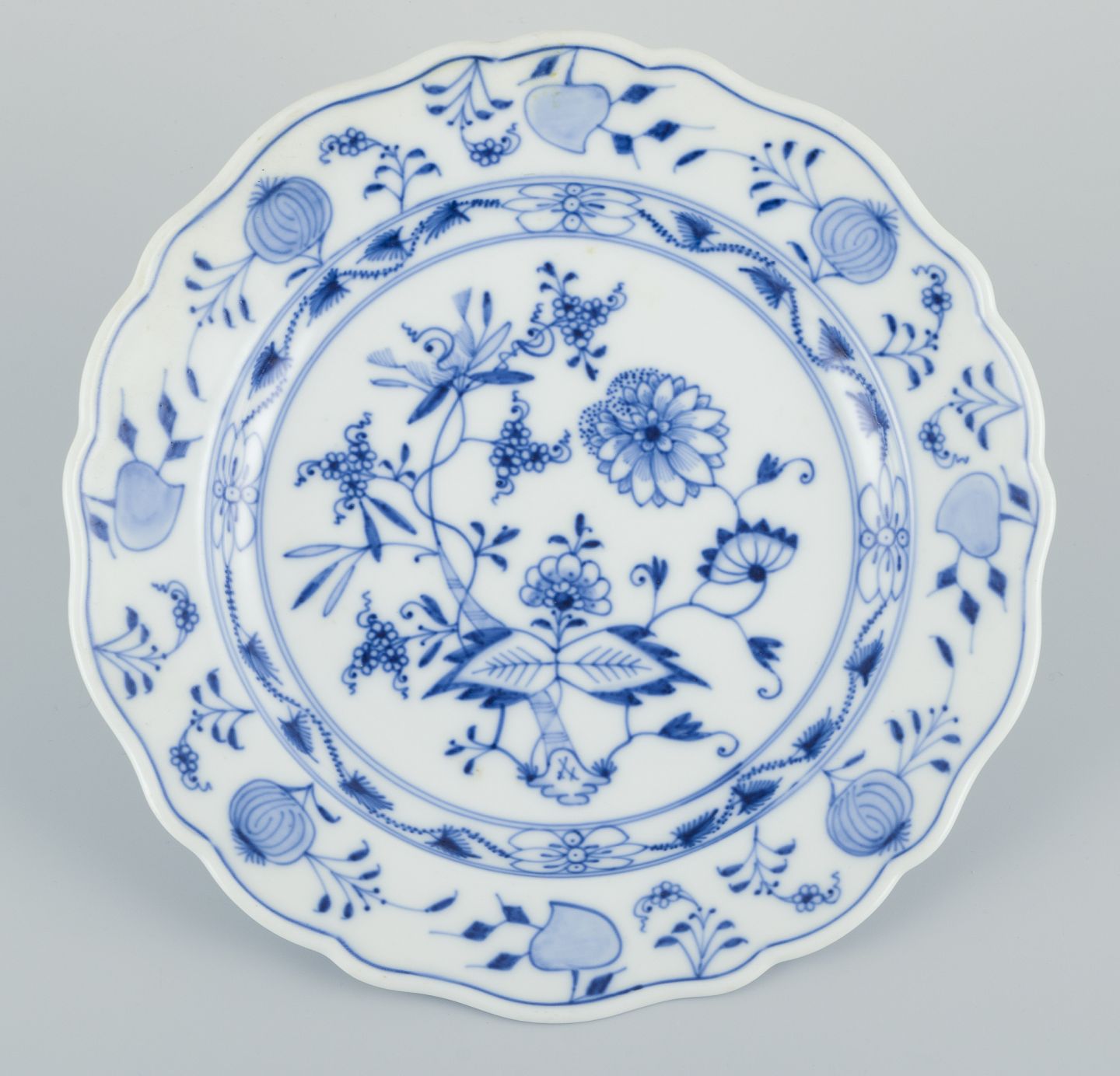 Meissen, Tyskland. Fire løgmønster frokosttallerkener i blåmalet porcelæn. Håndmalet. Ca. 1900. Stemplet. Første sortering. Perfekt stand Mål: D 23,0 cm.