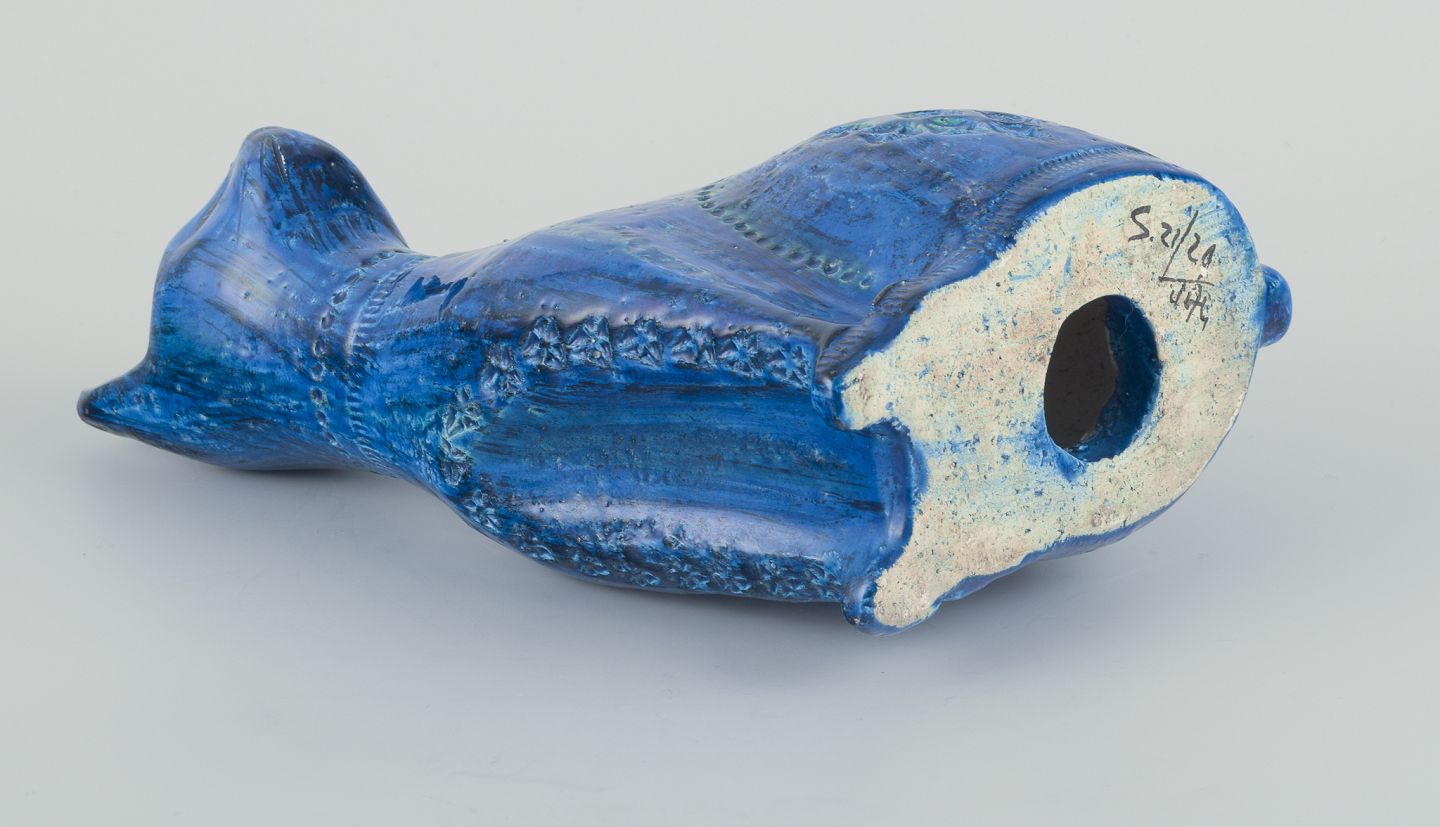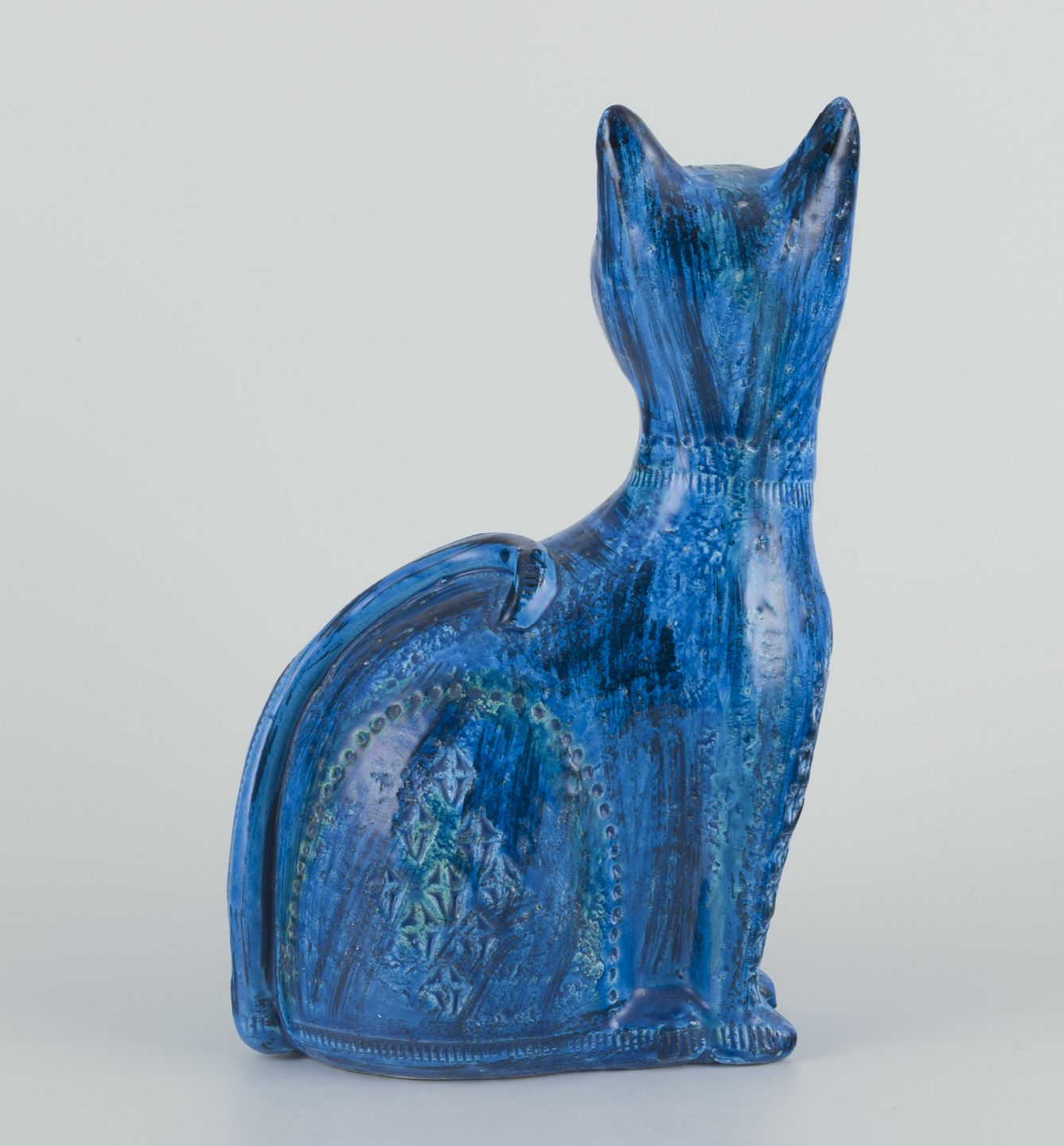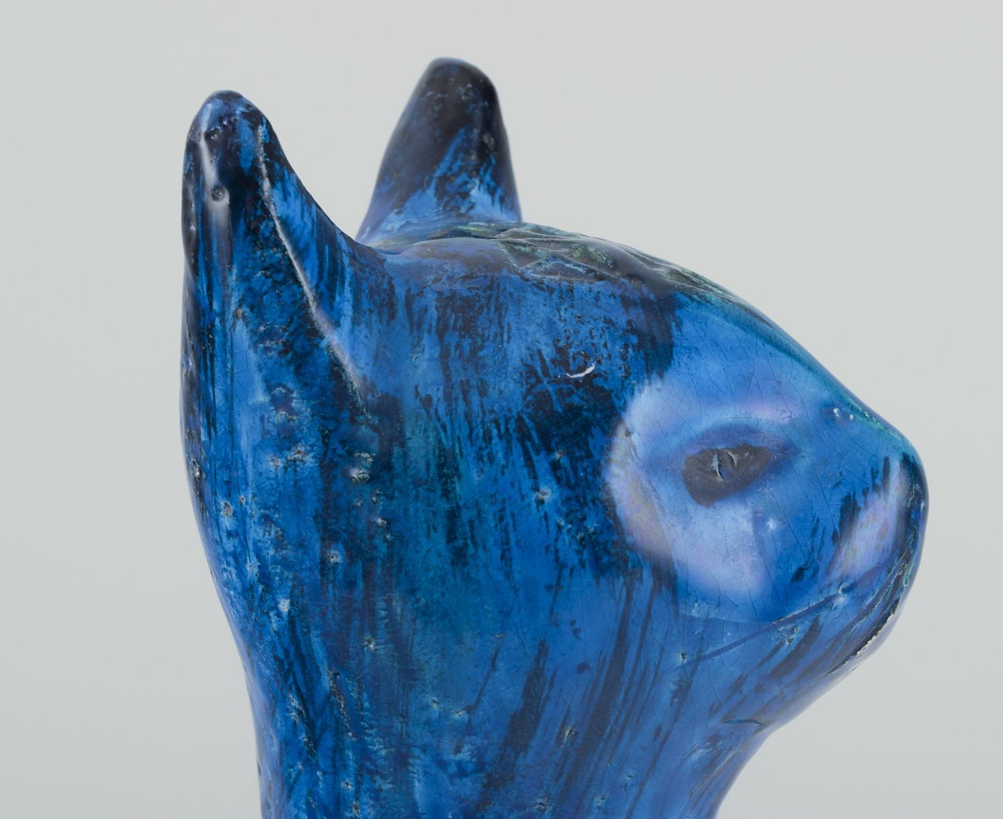Aldo Londi for Betossi, Italien. Stor keramikskulptur af kat i azurblå glasur. Datering: 1960/70’erne. Stemplet. Perfekt stand. Mål: H 27,5 x B 16,0 cm.