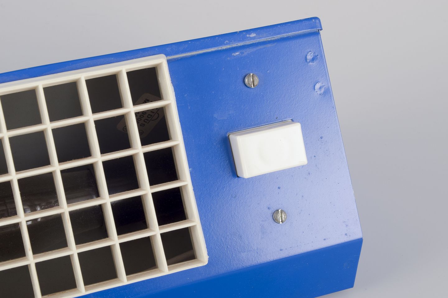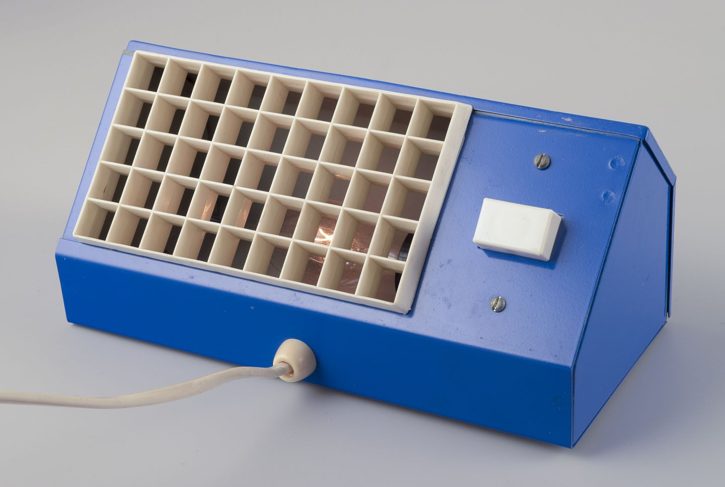 Hans-Agne Jakobsson (1919-2009), Sverige. "Elidus" sengelampe i blå-lakeret metal. Retro stil. Datering: 1970’erne. I flot stand. Måler: L 21,0 cm. x H 9,0 cm.