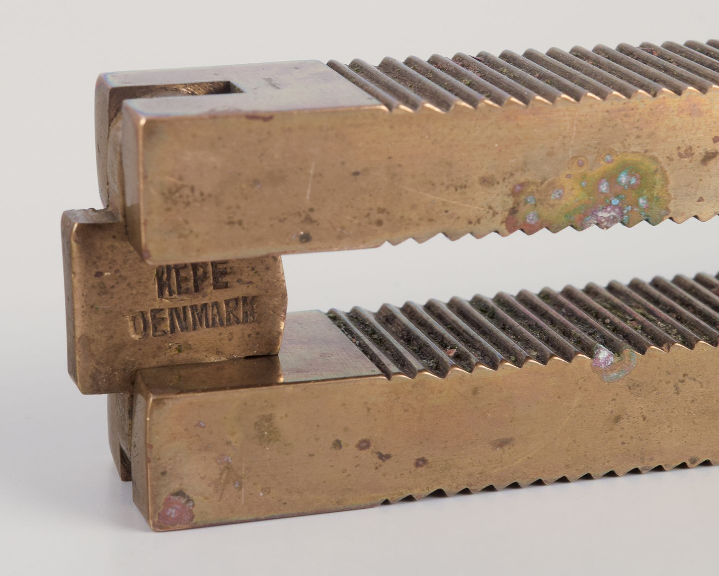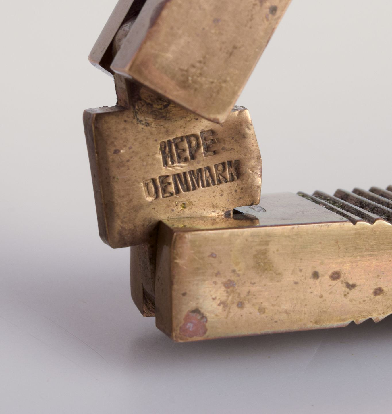 Hepe, Denmark. Nøddeknækker i ædeltræ og messing. Stilrent dansk design. Midt 1900-tallet. I flot stand med brugspræg. Stemplet. Mål: L 18,0 cm.