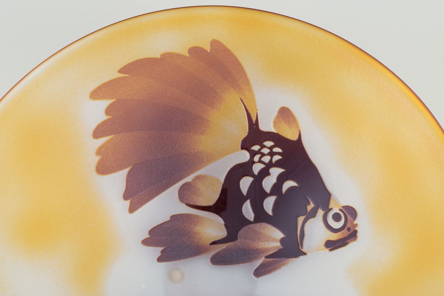 Fish motif. Clear glass and glass in shades of brown/yellow.