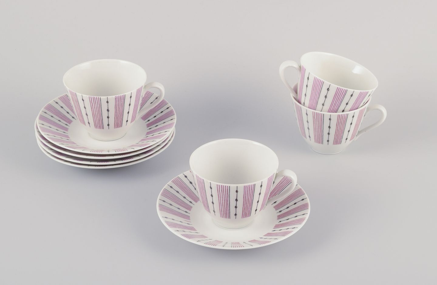 Gunnar Nylund for Rörstrand. Et sæt på fem "Casino" kaffekopper med tilhørende undekopper.