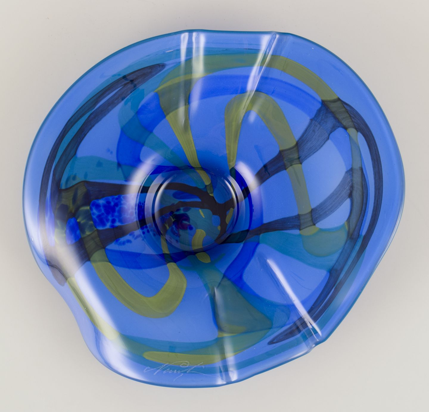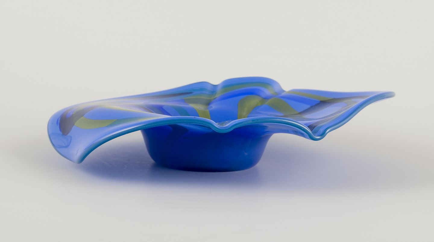 Tjekkisk glaskunstner. Skål i kunstglas. Organisk form. Mundblæst. Polykrom dekoration. Sent 1900-tallet. Perfekt stand. Signeret. Mål: D 24,0 cm. x H 6,0 cm.