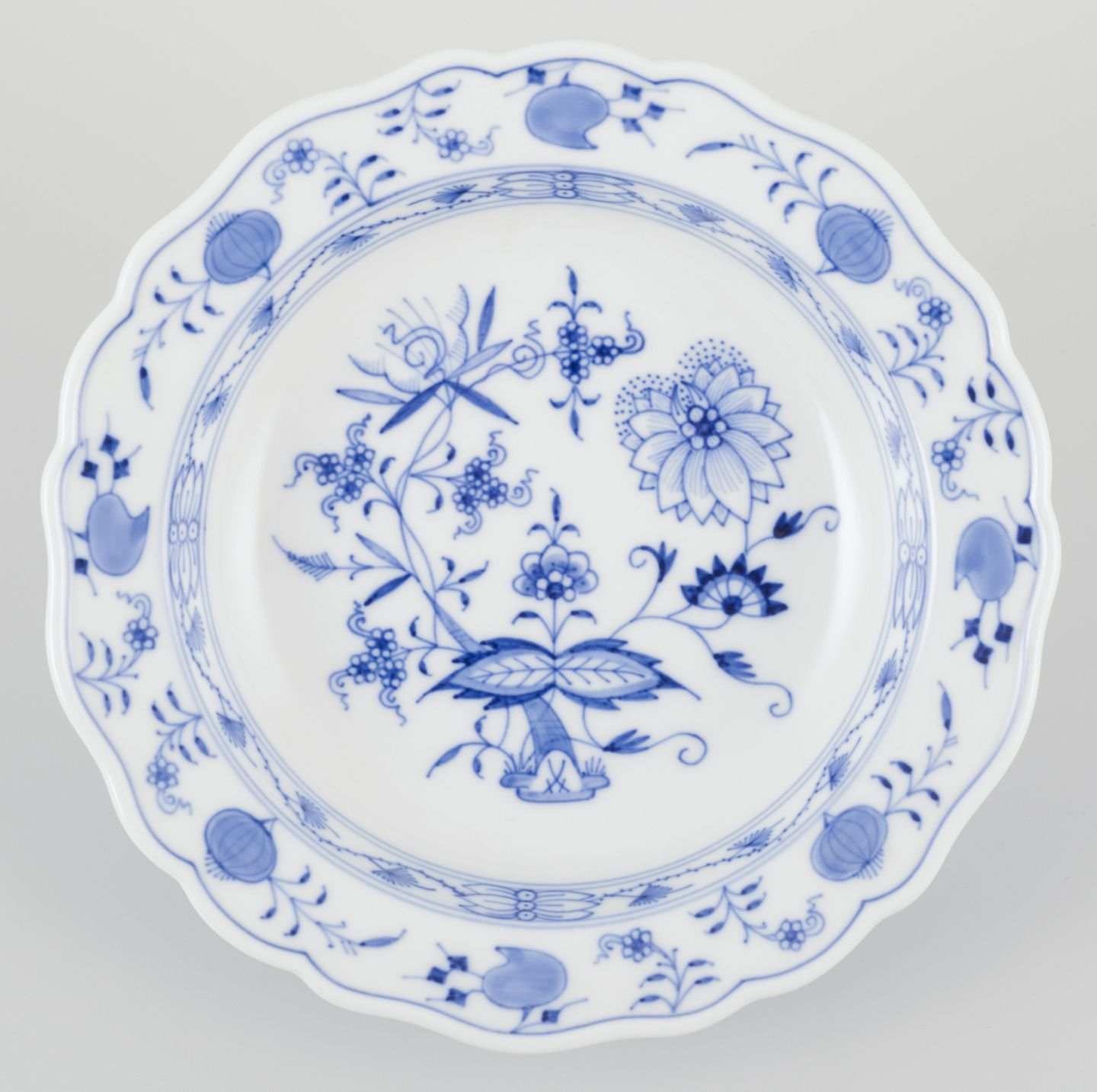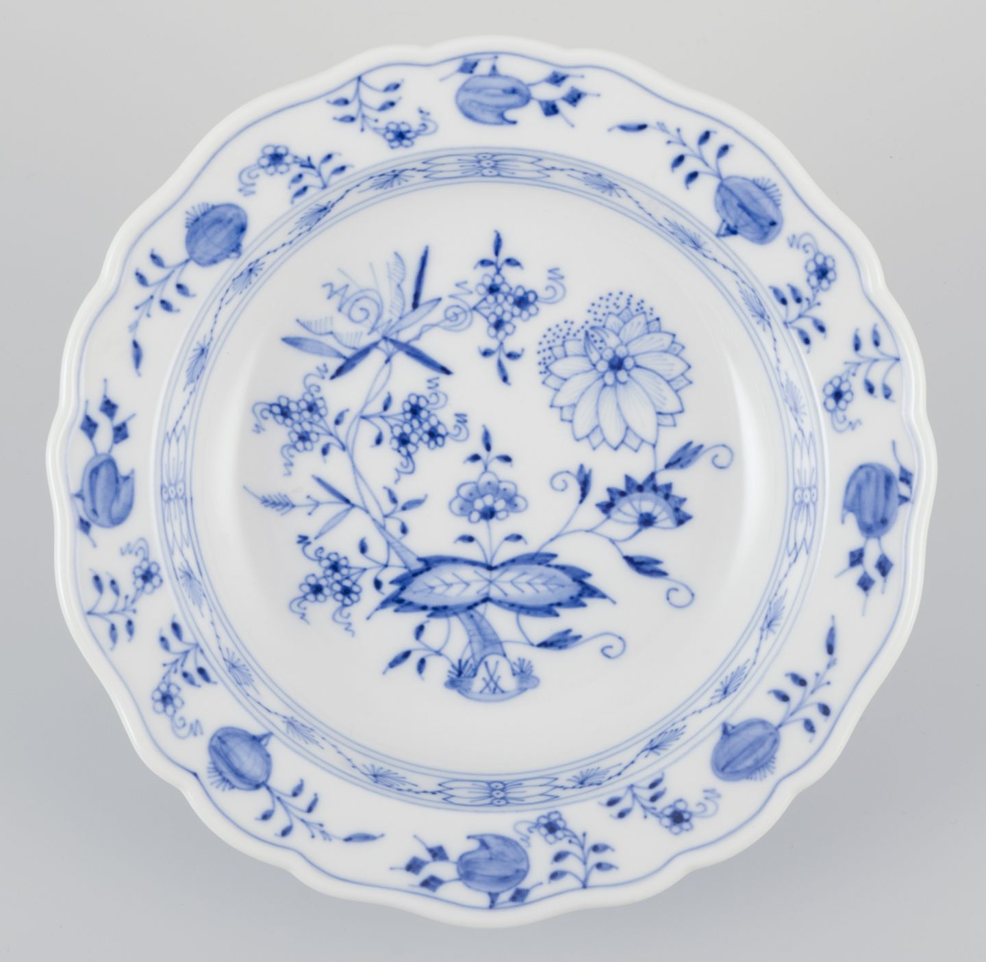 Meissen, Tyskland. Et sæt på fem små løgmønstrede tallerkener af porcelæn.