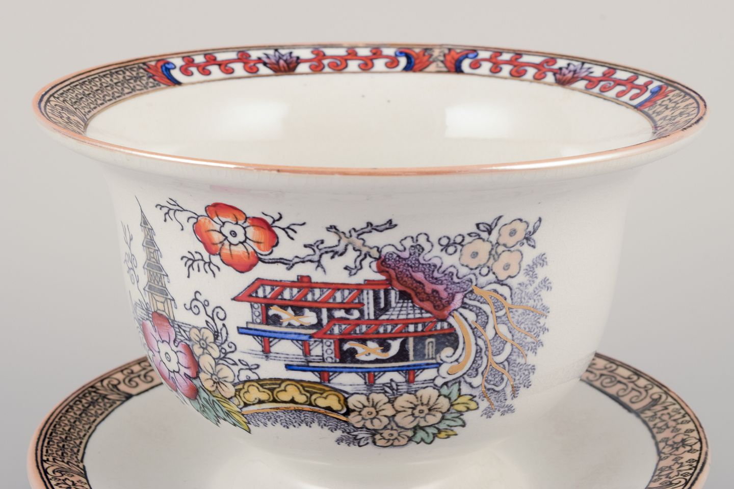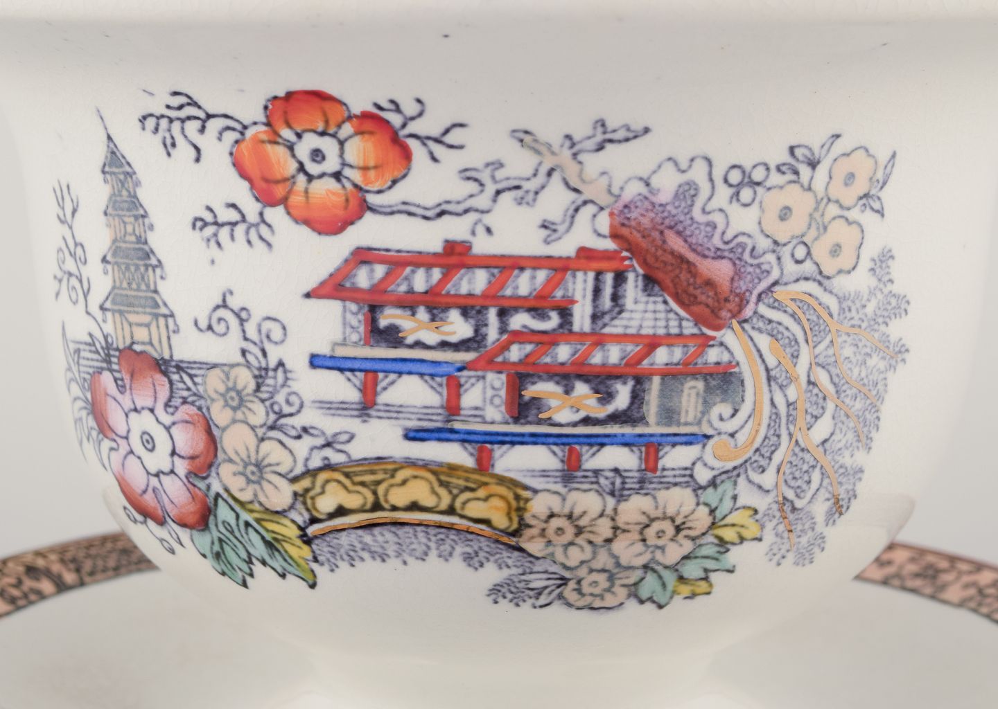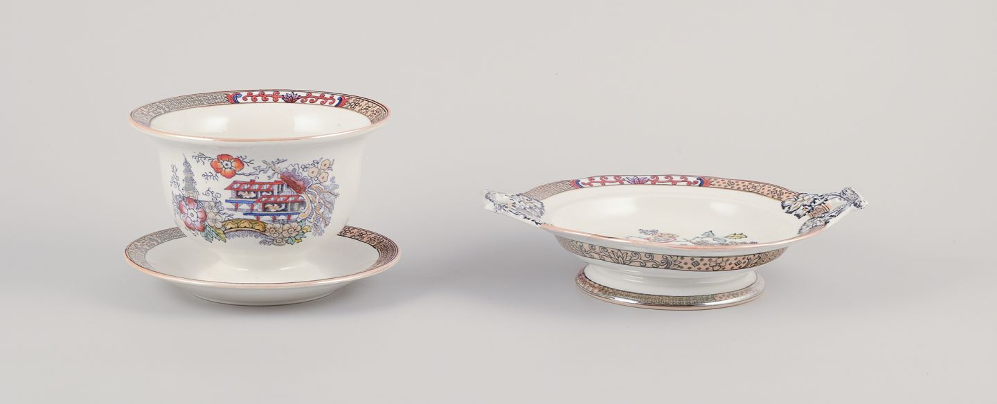 Rörstrand, Sweden. ‘Japan’ sauce bowl on foot and centerpiece with two handles. Faience.