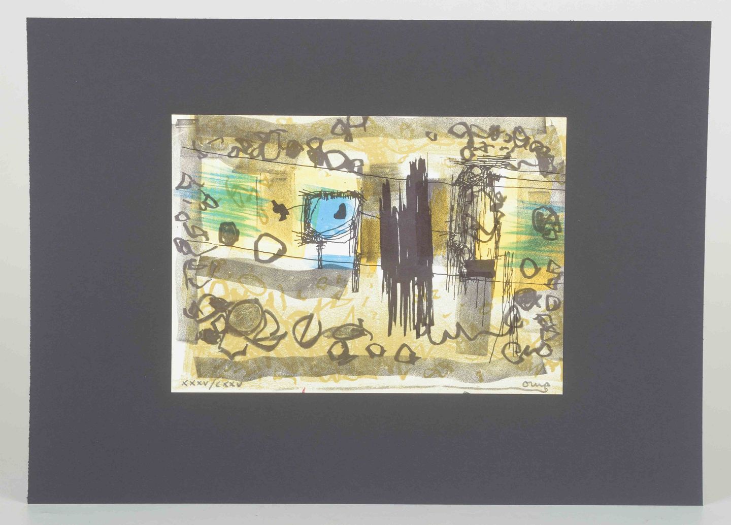 A characteristic abstract work by Swedish artist and designer Bengt Orup, known for his modernist glasswork at Johansfors Glasbruk as well as his graphic compositions.