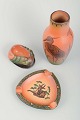 Dimensioner: Vase H. 18 cm, D. 9 cm. Askebæger D. 13 cm. Pibeholder H. 9,5 cm, D. 6,5 cm.