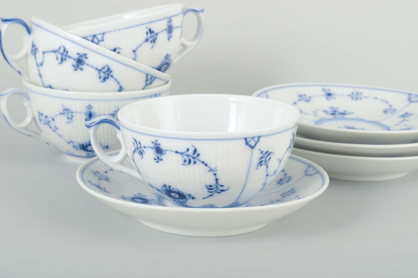 Musselmalet Riflet, tekopper med underkopper, sent 1900-tallet.