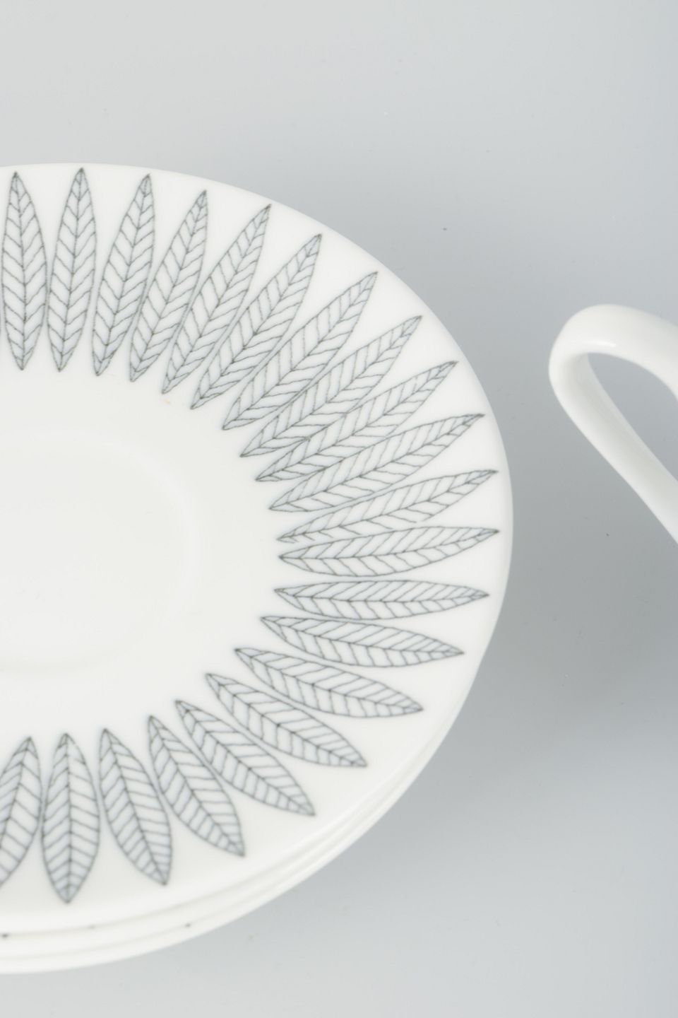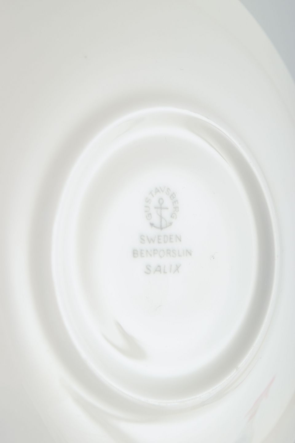 Faience with the characteristic grey “Salix” pattern on white ground, designed by Stig Lindberg.