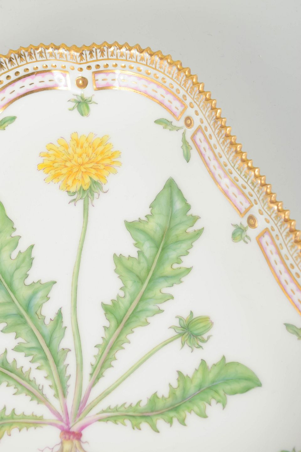 Bio: Flora Danica-stellet blev introduceret i 1790 og regnes blandt Royal Copenhagens mest prestigefyldte produktioner. Dekorationerne er baseret på det monumentale botaniske værk Flora Danica og er kendetegnet ved høj detaljerigdom og fremragende håndværksmæssig kvalitet. Tallerkener i denne størrelse indgik som alsidige serveringsdele ved det forfinede bord og er i dag eftertragtede samlerobjekter.