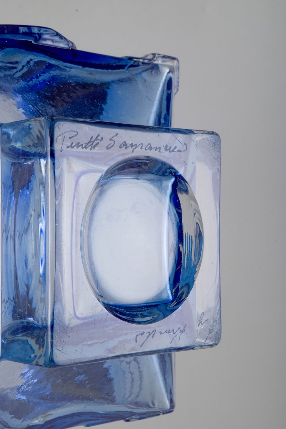 Pentti Sarpaneva (1925–1978) var en finsk designer og billedhugger, kendt for sine ekspressive arbejder i både glas og metal. Han arbejdede ofte med kraftige former, strukturerede overflader og en skulpturel tilgang, som adskiller hans værker fra mere traditionelle nordiske designudtryk. Sarpanevas arbejder fra 1960’erne og 70’erne er i dag højt værdsatte for deres kunstneriske tyngde og eksperimenterende karakter.
