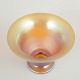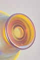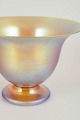 Elegant vase in iridescent art glass, model Myra, with a softly flared rim and raised foot; the pearlescent surface displays a refined play of warm colours typical of period luxury glass.