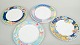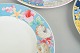 Elegant bone china set with a colourful decorative pattern; the Leonard Paris model is noted in the description. Flat plates with a pronounced, richly decorated rim and a white centre, creating a balanced and decorative appearance.