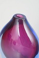 Dekorativ kunstglasvase i klart blåt glas med indkapslet rosa kerne og blød organisk form, udført i karakteristisk Murano-stil med lagdelt glas.