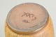 Hånddrejet stentøjsvase med modelnummer 16, udført i organisk form med reliefdekoration af blade ved halsen og dækket af levende glasur i varme jordfarver med nuancerede overgange.