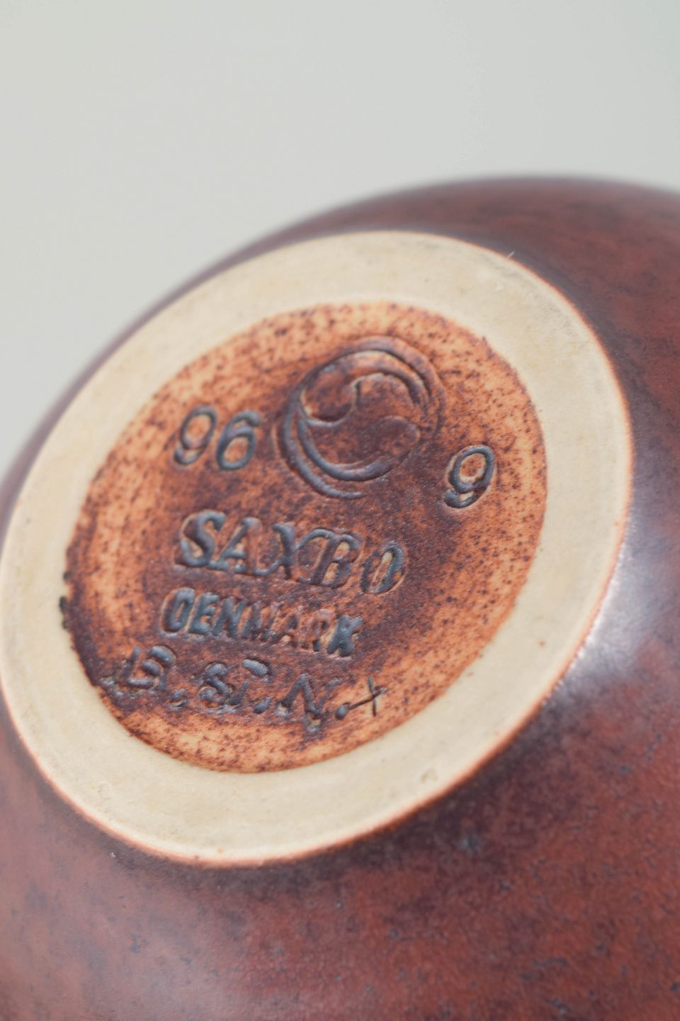 Eva Staehr Nielsen (1911–1976) was a Danish ceramicist and one of the most important designers associated with Saxbo. She worked at the workshop from the 1930s and developed a distinctive style characterised by simple, organic forms combined with rich, nuanced glazes. Her works are highly regarded today for their craftsmanship and timeless aesthetic.