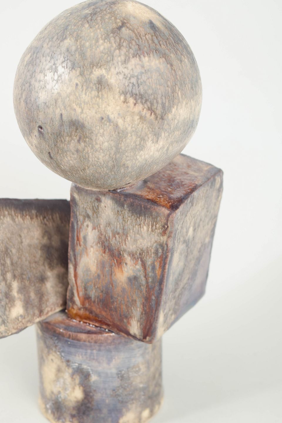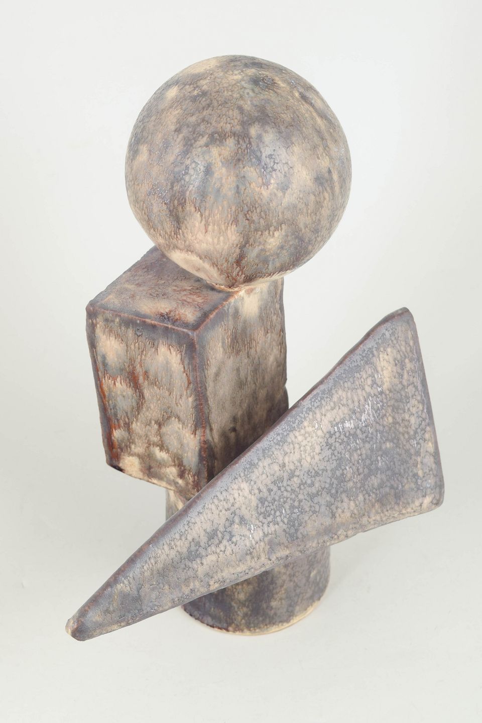 Stentøjsskulptur i kubistisk stil, med silkemat creme-grå glasur overflade.