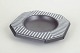 Dekorativt ottekantet fad i stentøj med grafisk dekoration i sort og hvid med stribede felter og geometrisk mønster. Model 4254.