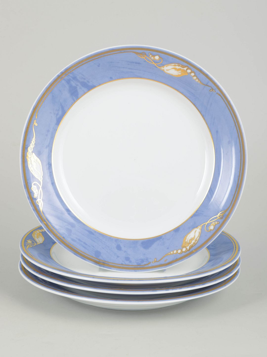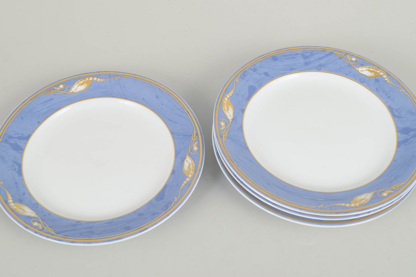 Fine tallerkener i porcelæn med Blå Magnolia dekoration, model 619, fremstillet i 1990’erne. Første sortering og fabriksstemplet.