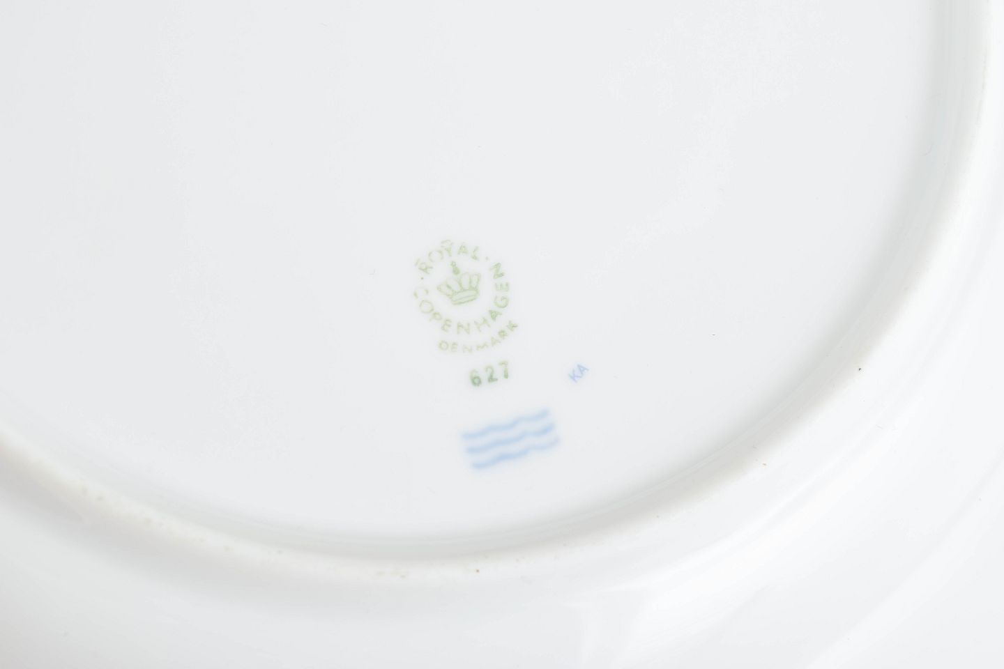 Elegante middagstallerkener i porcelæn med Blå Magnolia dekoration, model 627, fremstillet i 1990’erne. Første sortering og fabriksstemplet.