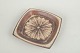 Decorative stoneware dish with characteristic relief decoration and earthy glaze tones. The piece reflects the Bornholm ceramic tradition. Marked on the base.