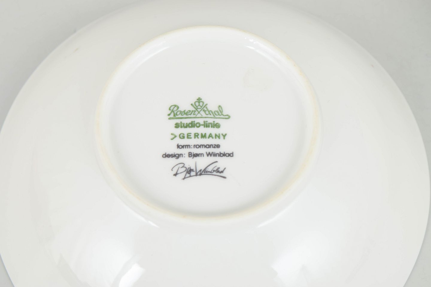 Bjørn Wiinblad (1918–2006) var en dansk kunstner og designer kendt for sit fantasifulde og dekorative formsprog. Han arbejdede med keramik, grafik, scenografi og design og samarbejdede blandt andet med Rosenthal, hvor han skabte nogle af sine mest ikoniske porcelænsserier. Hans værker er præget af eventyrlige motiver, organiske linjer og en tydelig personlig stil.