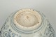 Hånddrejet porcelænsskål med detaljeret blå underglasurdekoration, udført med ornamentale og stiliserede motiver typiske for perioden.