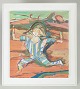 Ekspressivt figurativt motiv med bevægelse og levende farveføring udført i mixed media på plade, signeret.