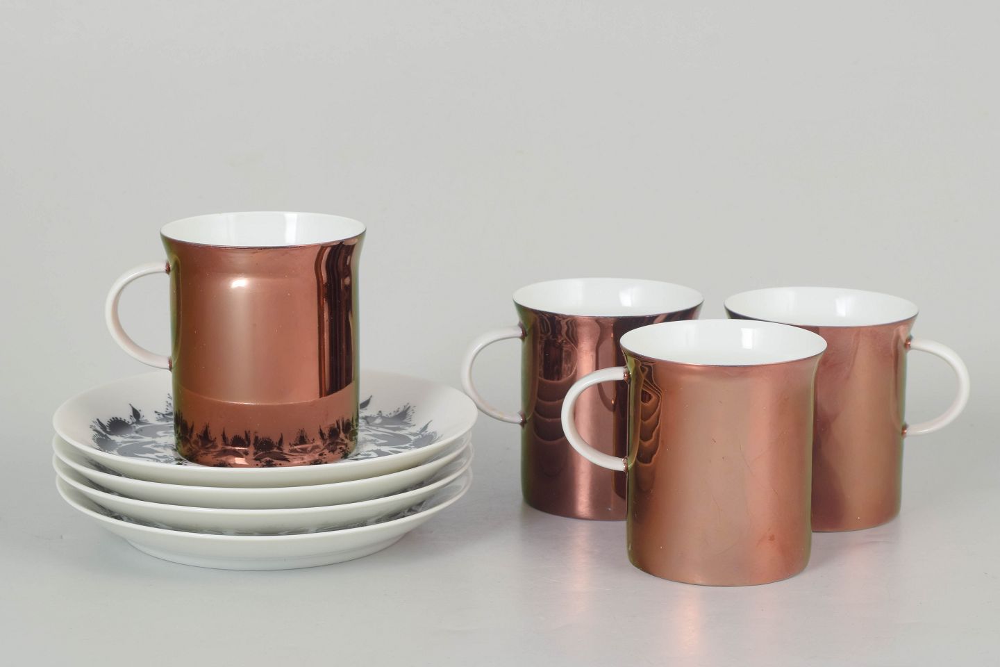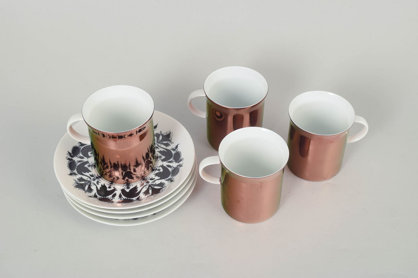 Bjørn Wiinblad for Rosenthal, sæt af fire kaffekopper med underkopper.