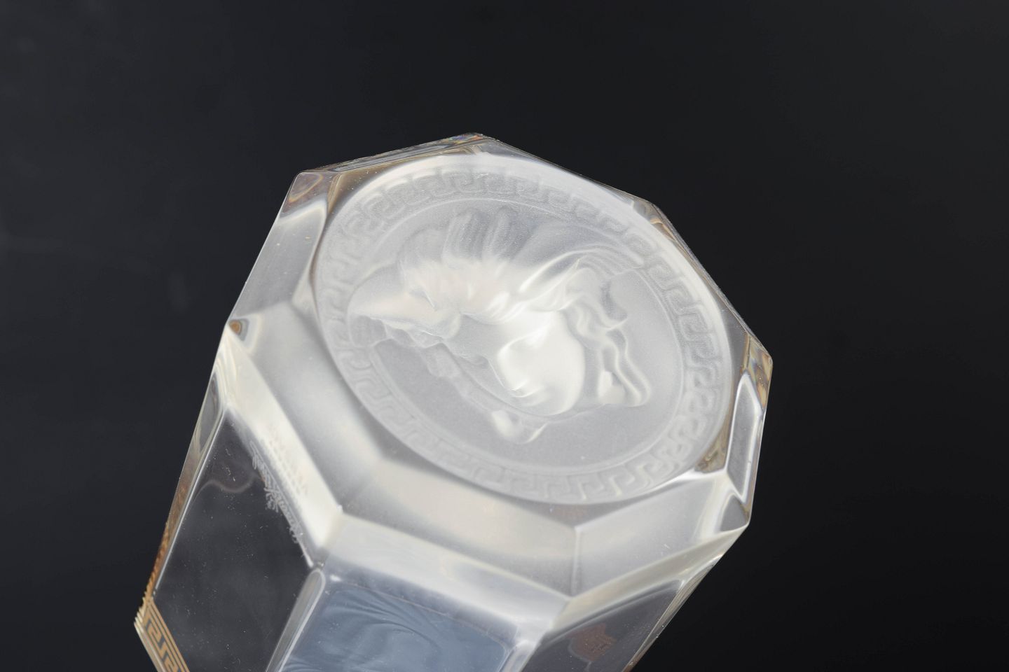 Sæt af seks whiskyglas i klart glas med karakteristisk Medusa-motiv fra Versace-serien produceret af Rosenthal.