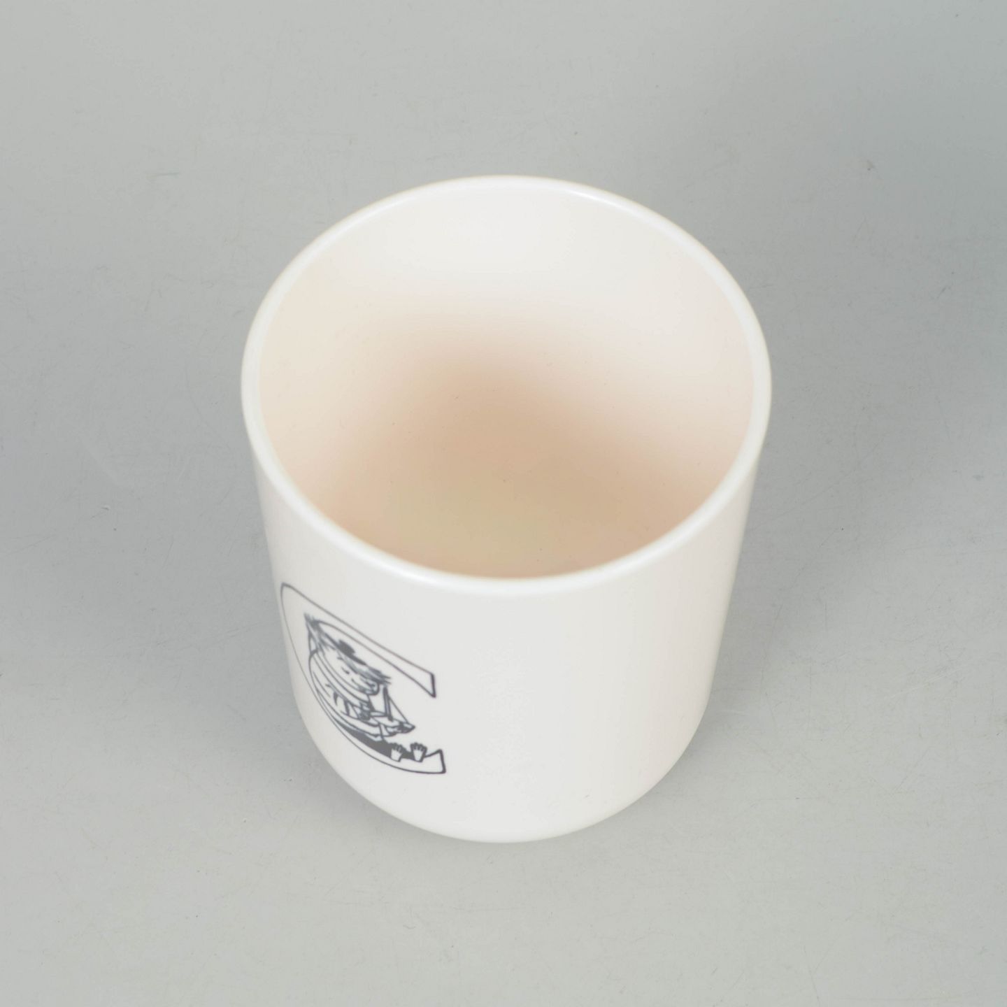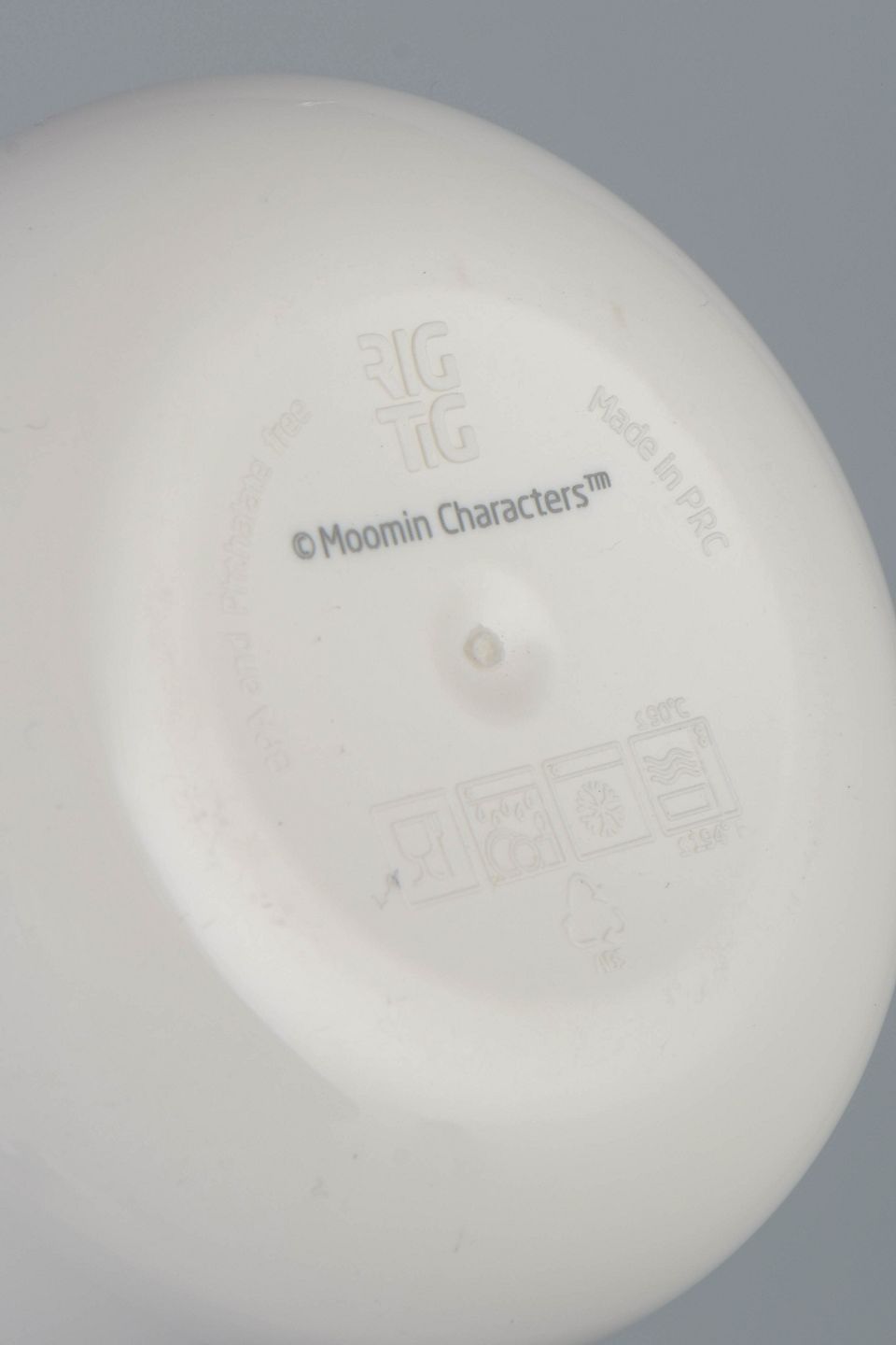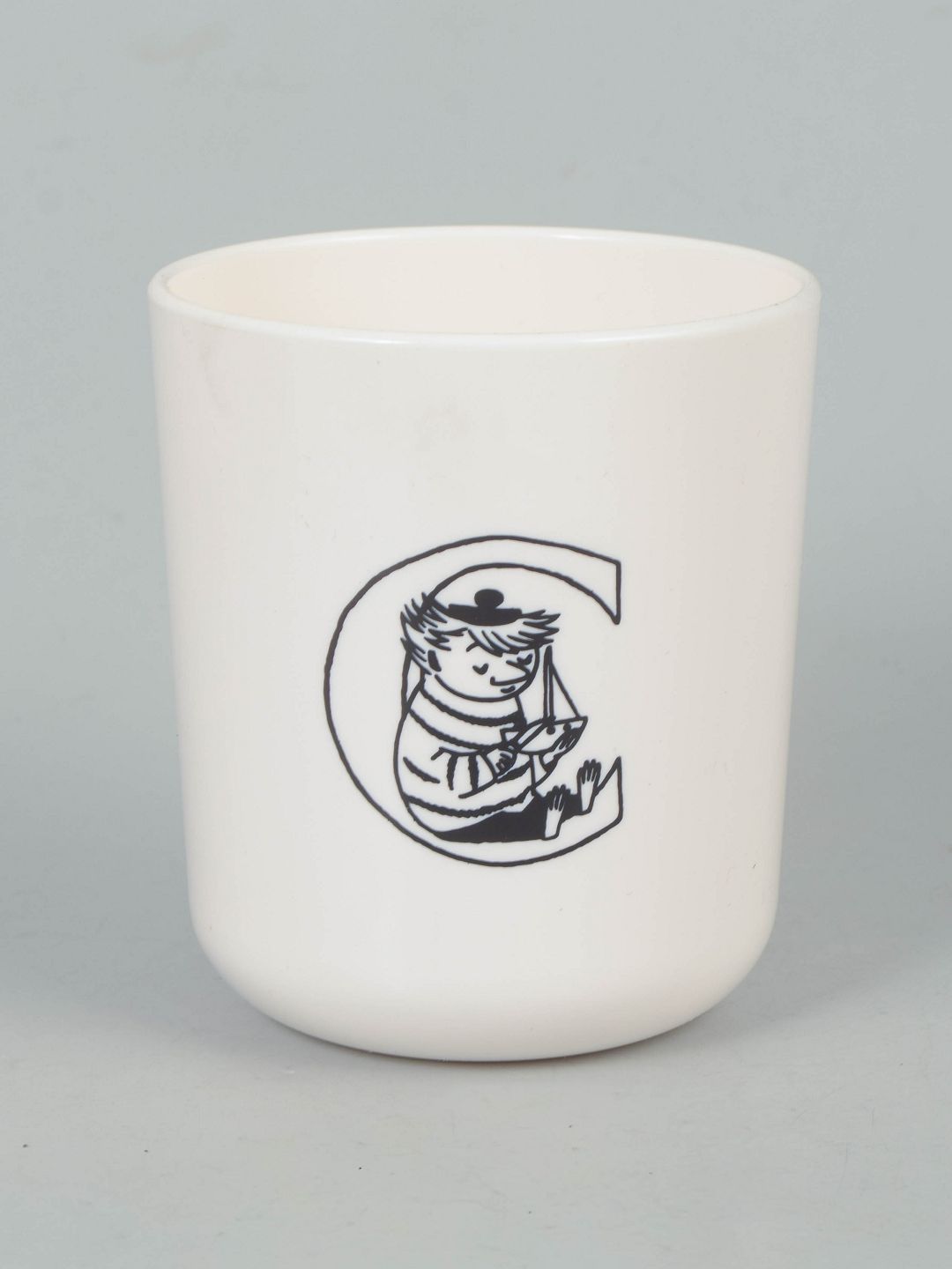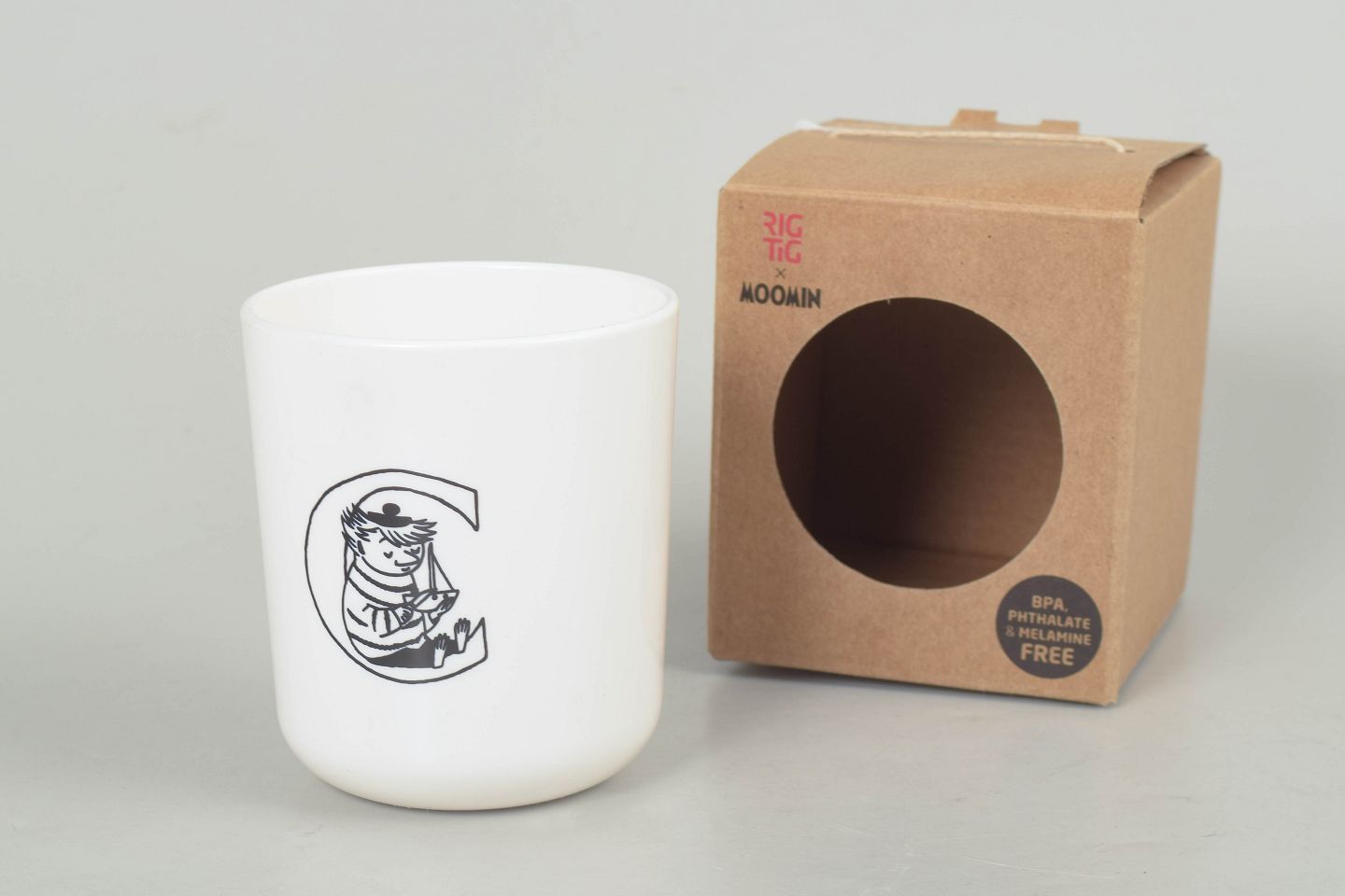 Moderne kop i melamin med Mumitrold-motiv, produceret af RIG-TIG Danmark, leveret i original emballage.