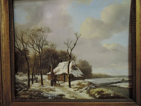 Hendrik van the true Bakhuyzen (1795-1860). Netherlands. Winter scene with walking couple. Signed H. v. D. P. Bakhuyzen. Dimensions 35 x 41 cm