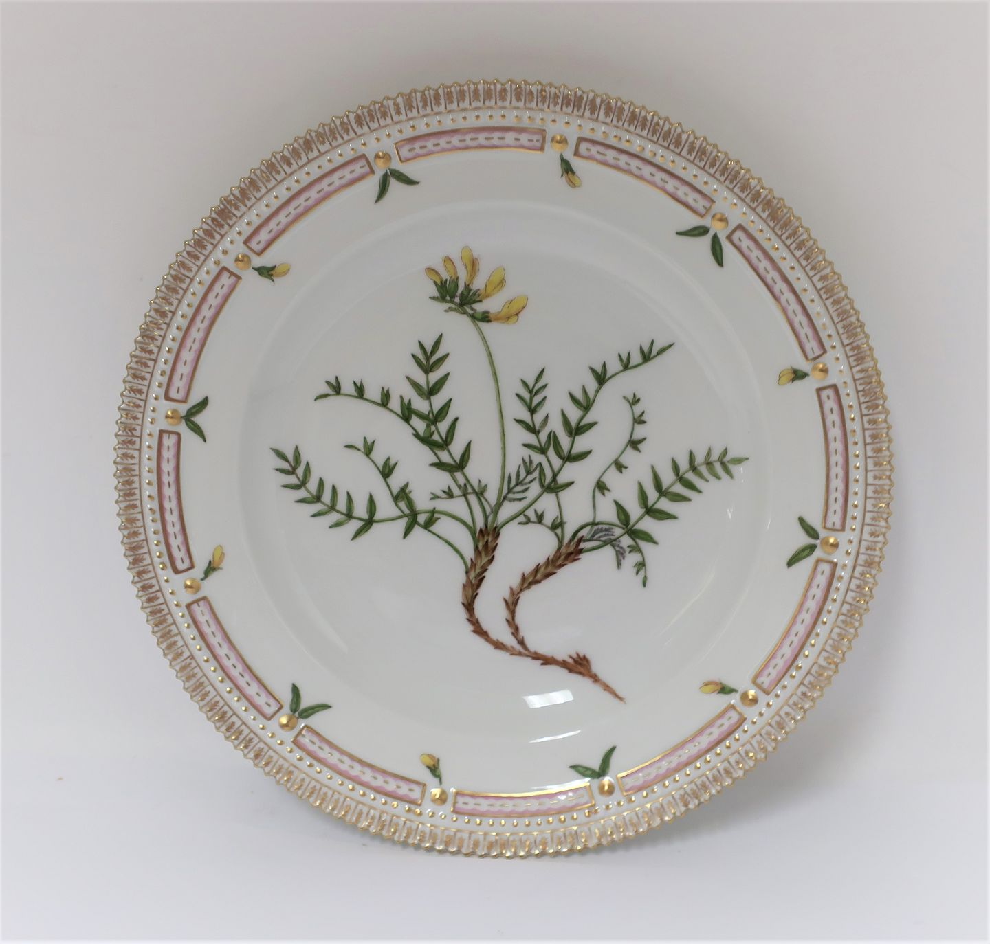 Royal Copenhagen, Flora Danica. Middags tallerken. Design #3549. Diameter 25 cm. (1 sortering). Astragalus uralensis Vahl