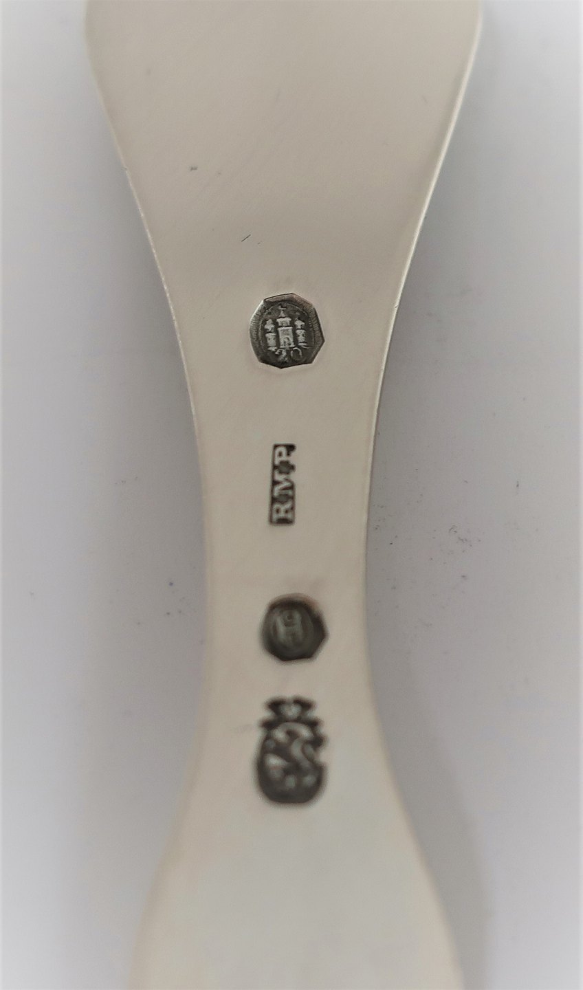 Silver serving spoons. Stamped S&MB. Length 21 cm.