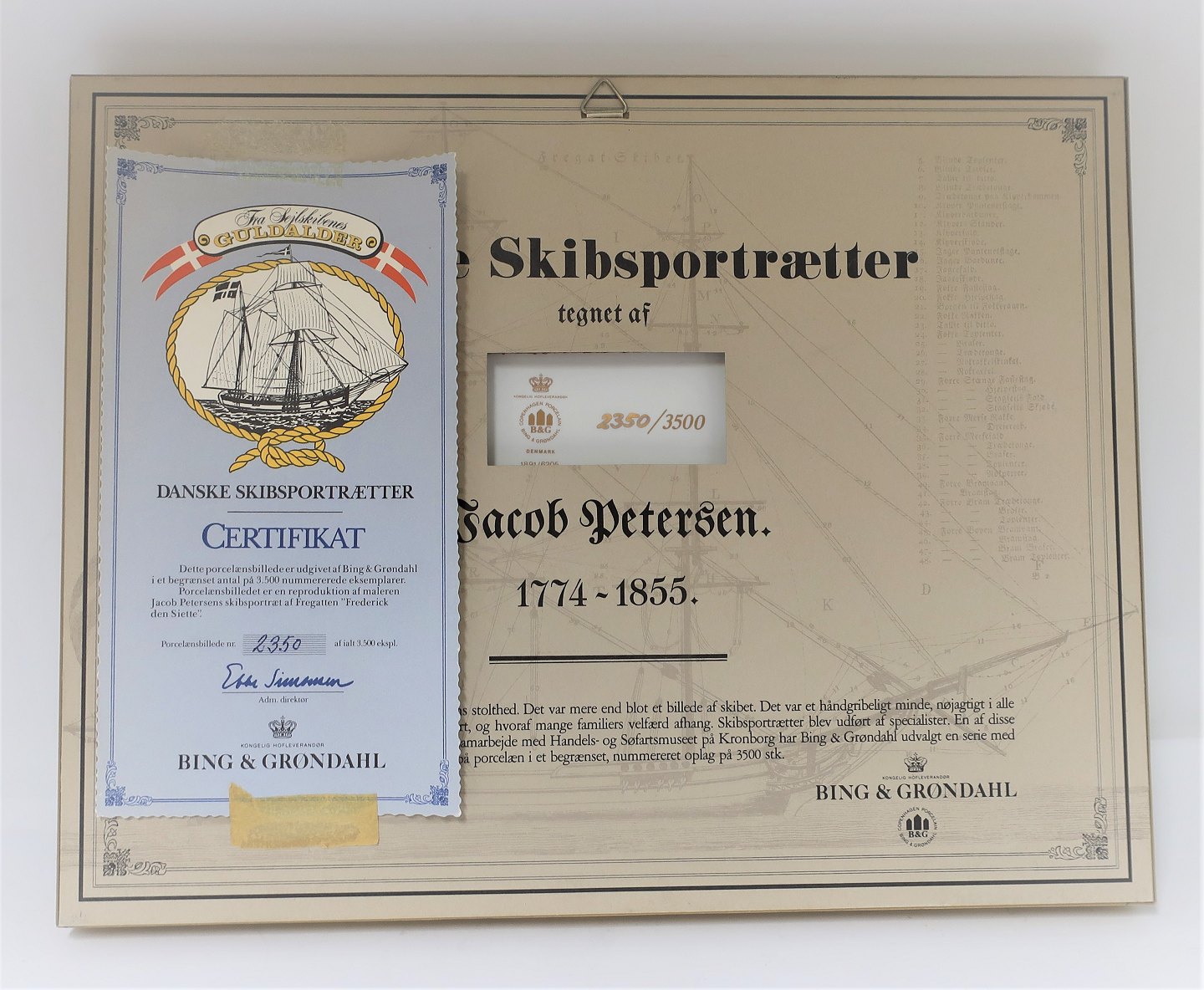 Bing & Grondahl. Porcelain. Danish ship portraits. Image of the frigate "Frederick the Siette". Dimensions: Width 38 * 30 cm. 3500 have been produced and this number is 2350.
