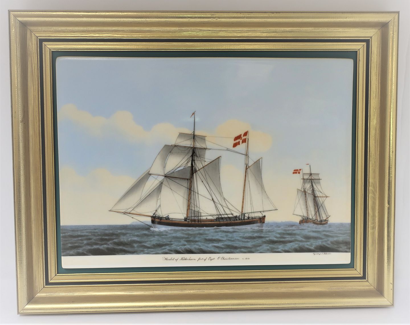 Bing & Grondahl. Porcelain. Danish ship portraits. Image of "Haabet". Dimensions: Width 38 * 30 cm. 3500 have been produced and this one is no 119
